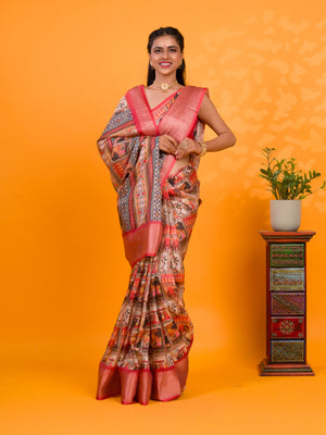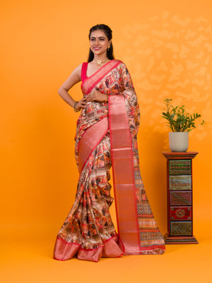 Tanmira New Beautiful Cotton Silk Kalamkari Style Zari Weaving Saree STL