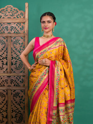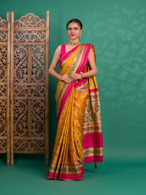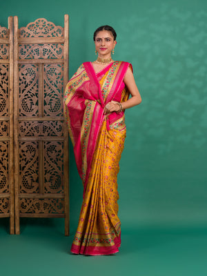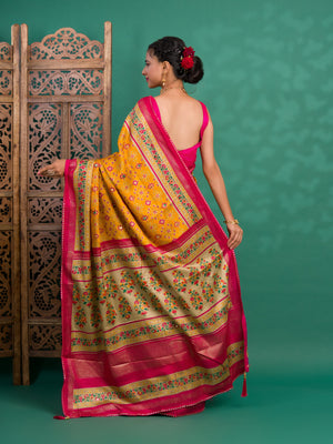 Tanmira New Beautiful Cotton silk Patola style With Mirror Work Saree SWA