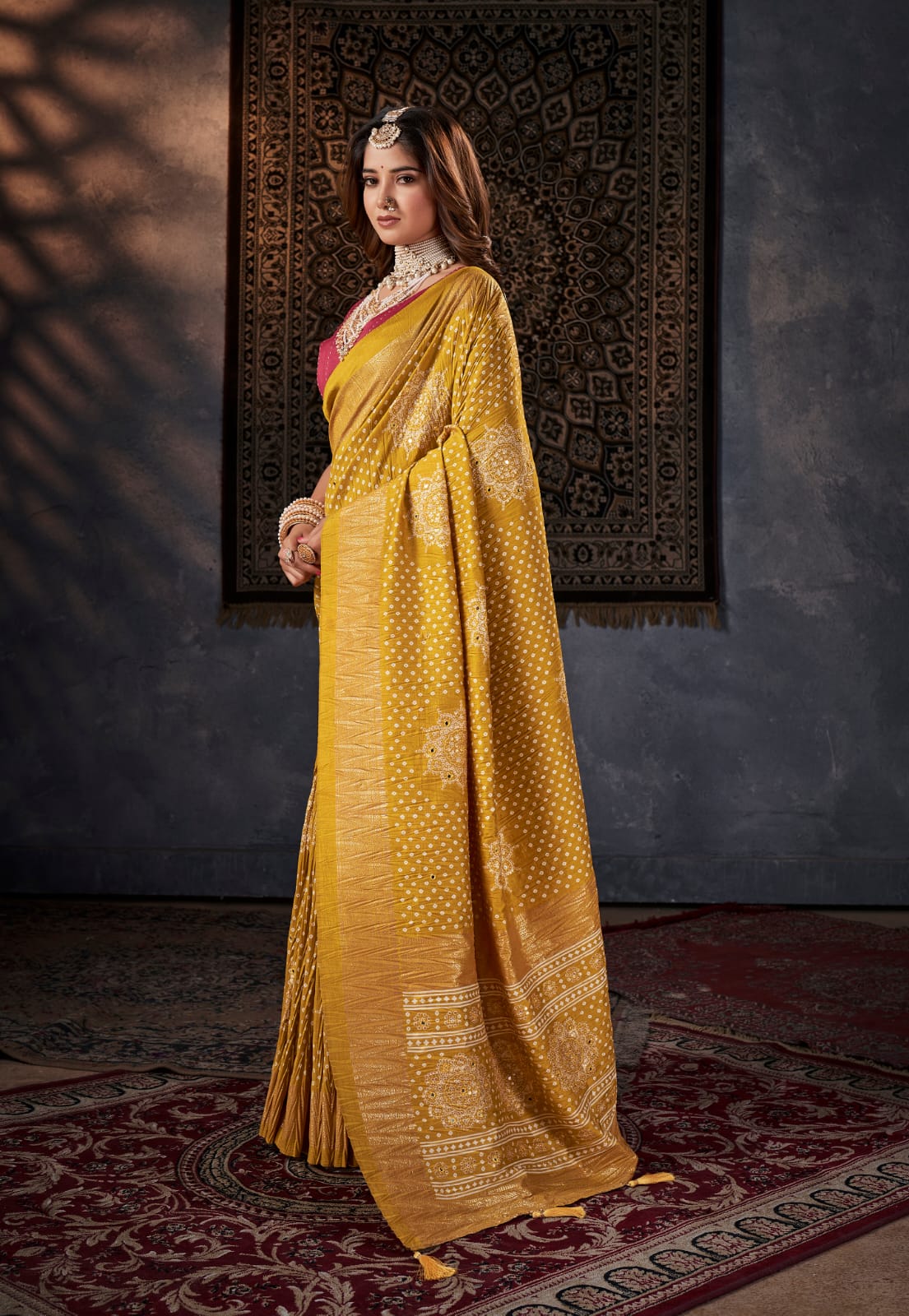 Tanmira New Beautiful Cotton Silk Plastic Mirror Work Saree