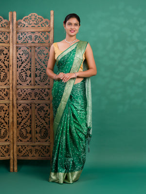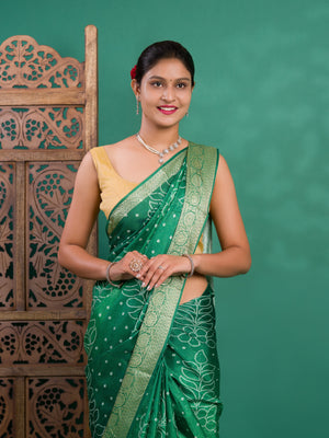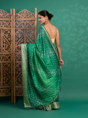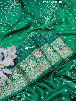 Tanmira New Beautiful Dola Silk Bandhani Style With Zari border Saree GAN