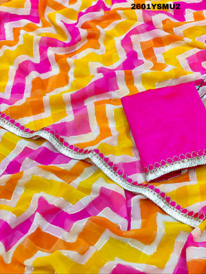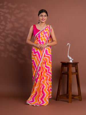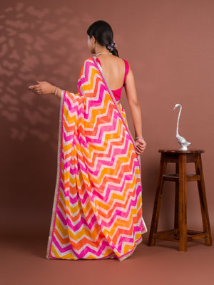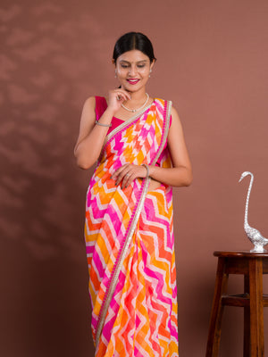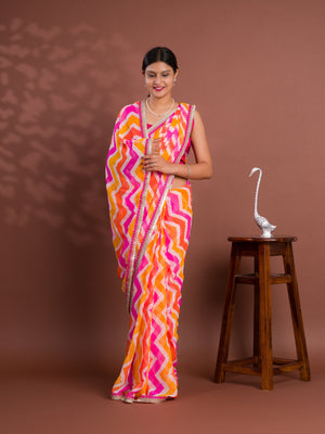 Tanmira New Beautiful Georgette Leheriya Foil Print Style With Gotapatti Border Work Saree SWA
