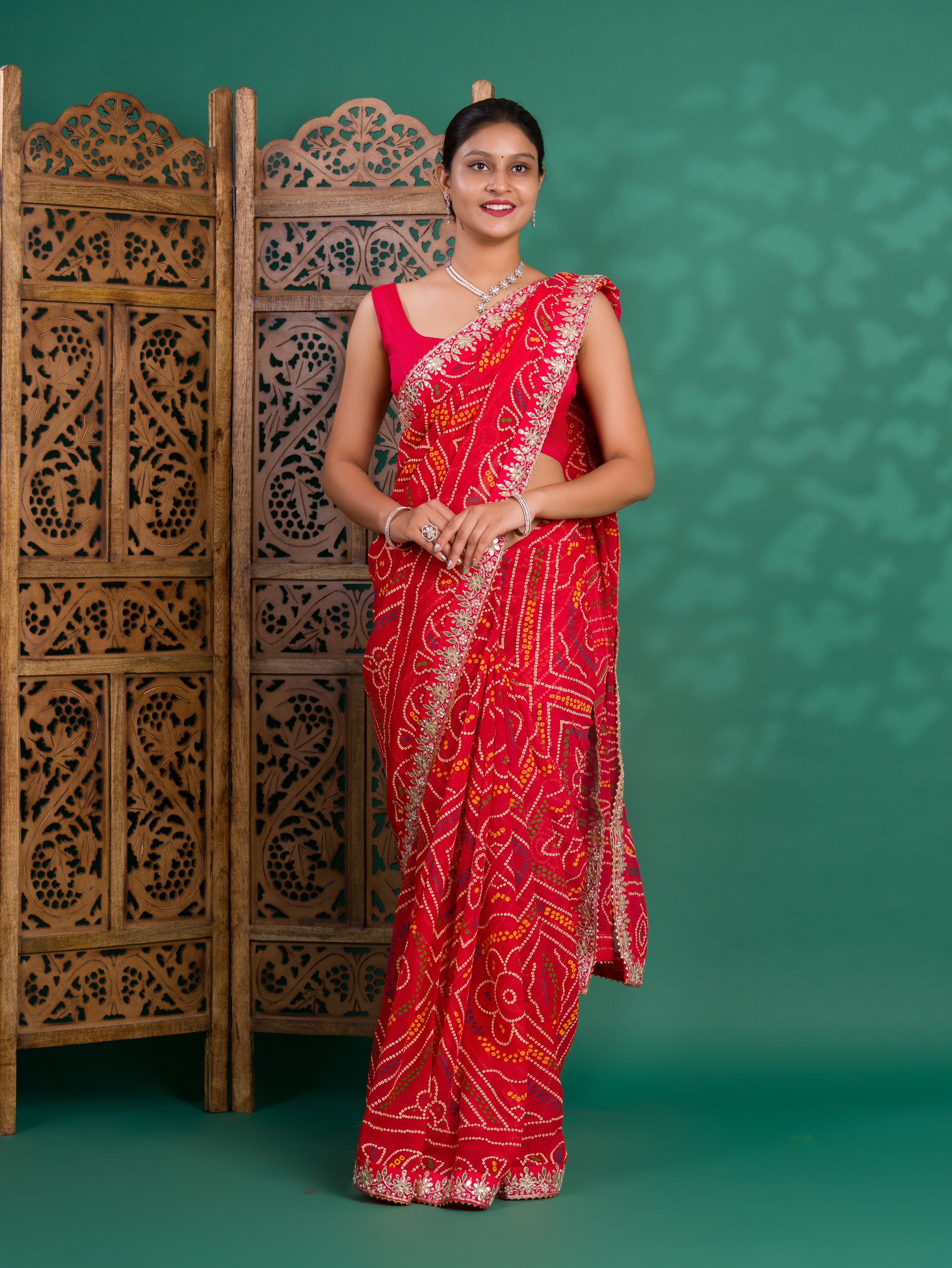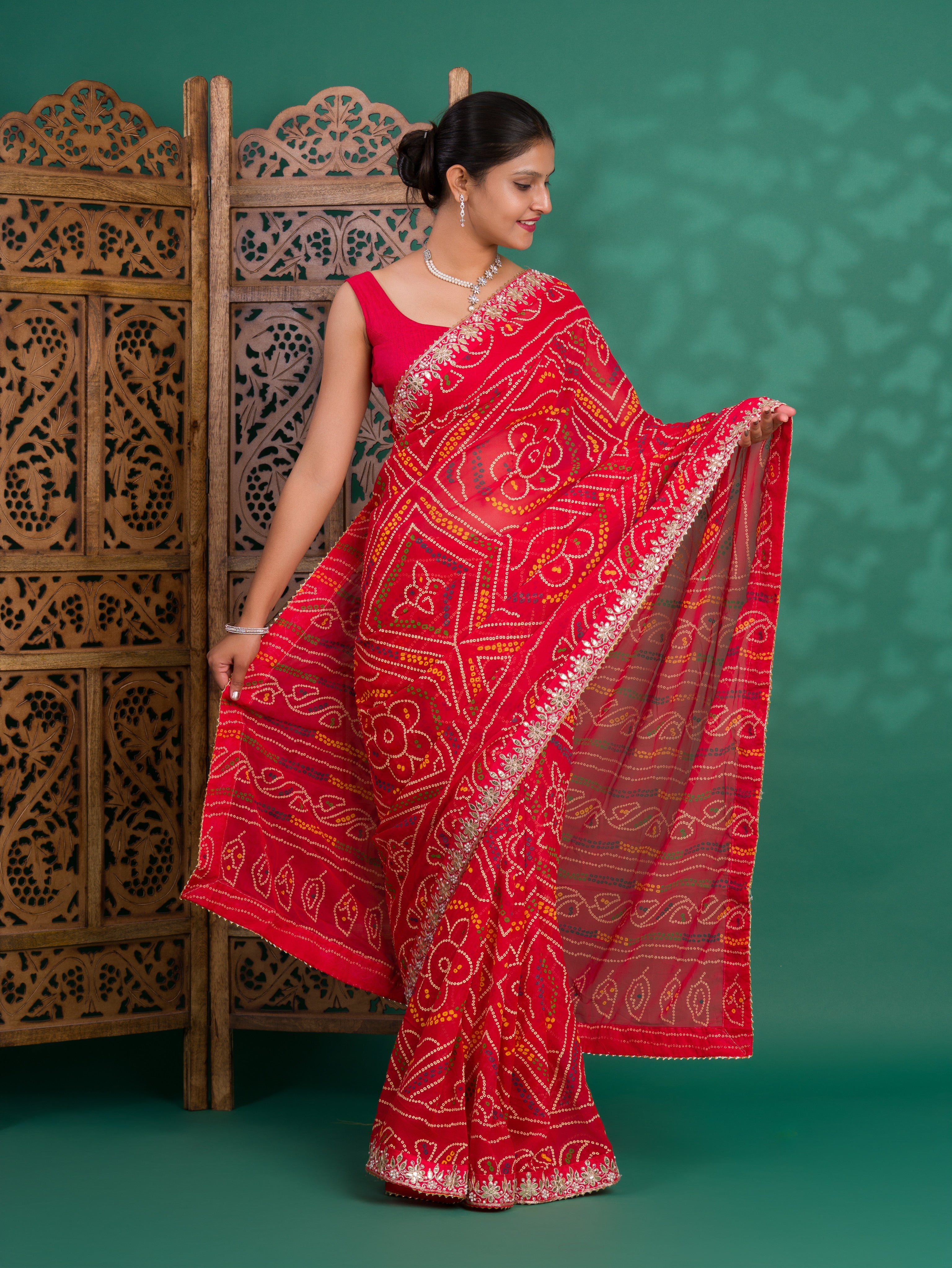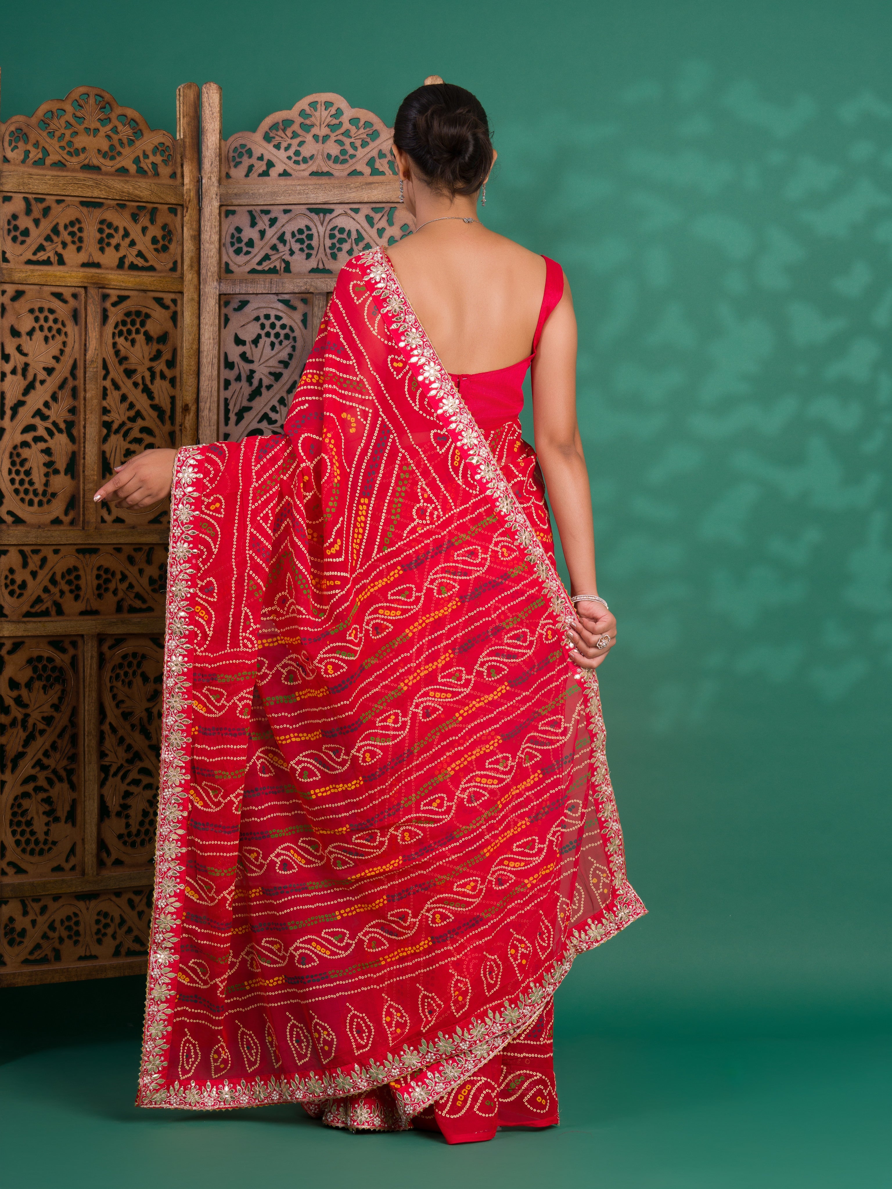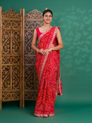 Tanmira New Beautiful Georgette Traditional Style Gotapatti Work Saree PAD