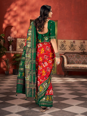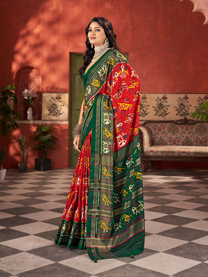 Tanmira New Beautiful Malai silk Patola Style With Hand print Work saree
