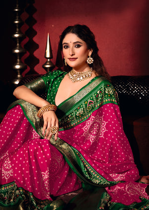 Tanmira New Beautiful Pashmina Silk Bandhani Potol Print Saree STR
