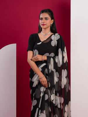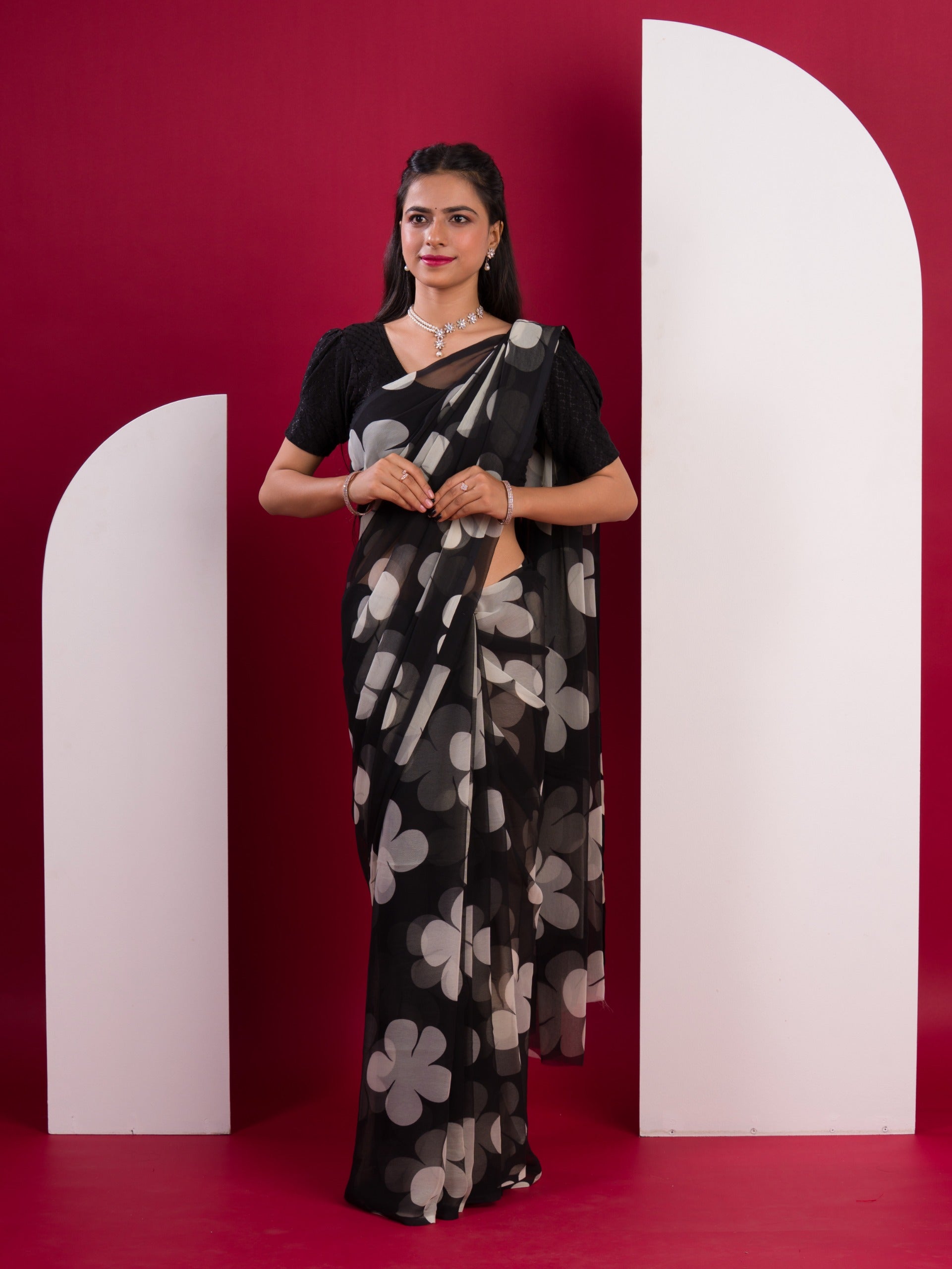 Tanmira New Beautiful Pure Georgette Flower Printed Style Saree SUN