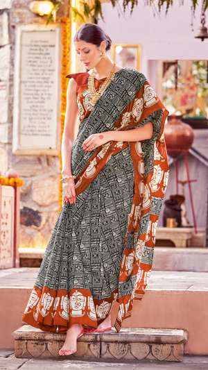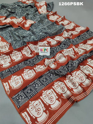 Tanmira New Black printed Bhagalpuri Silk Ethnic Wear Saree With Blouse APL
