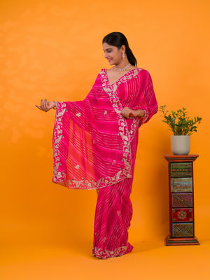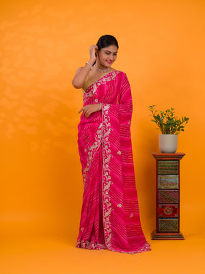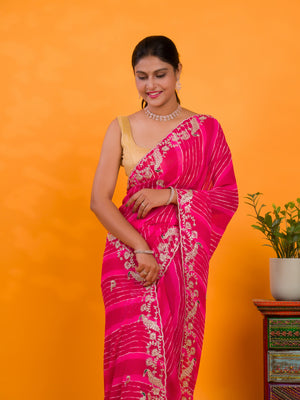 Tanmira New Georgette Leheriya Style With Pitan GotaPatti Work Saree PDM