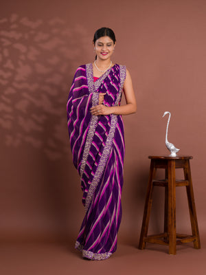Tanmira New Chiffon Leheriya Style With Embroidery Border Work Saree STL