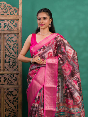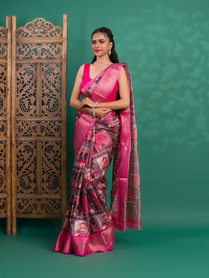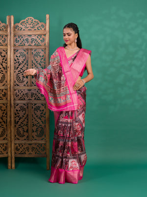 Tanmira New Cotton Silk Kalamkari Style Zari Weaving Saree STL