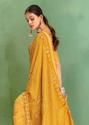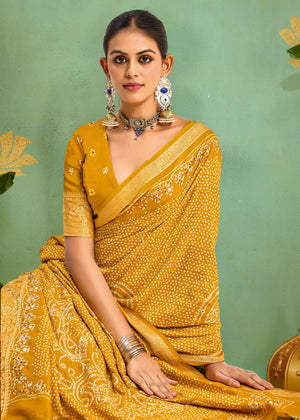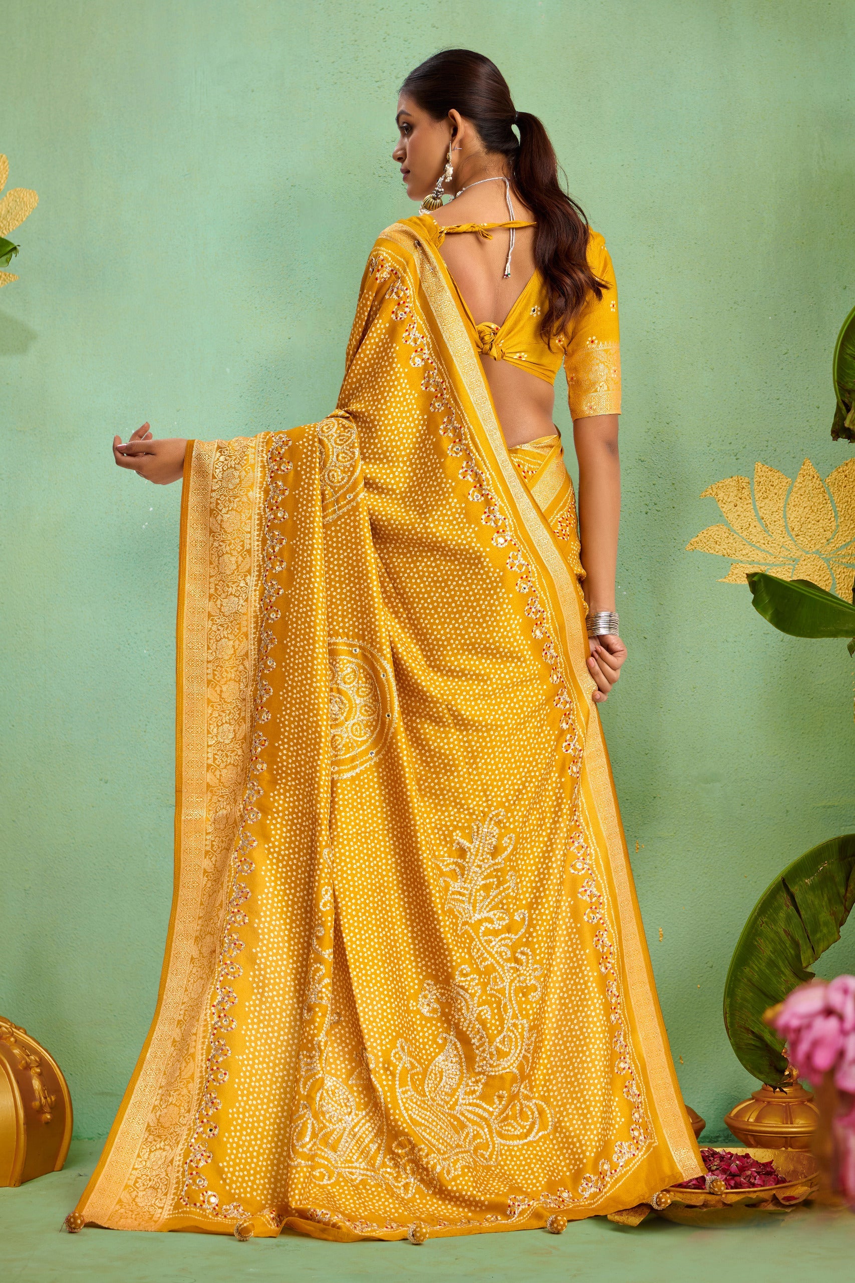 Tanmira New Dola silk Bandhani Print Gotapatti Aaritari work Saree Green GAN