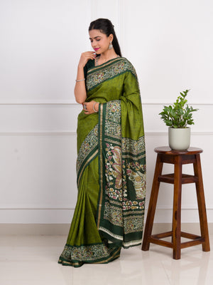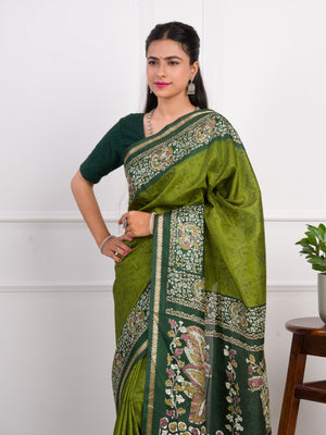 Tanmira New Dola Silk Printed Style With Zari Border Work Saree VJT