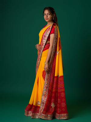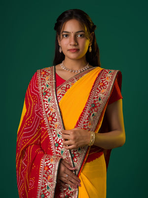 Tanmira New Georgette Gotapatti Work Chunri Pomcha Saree