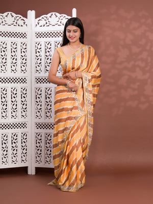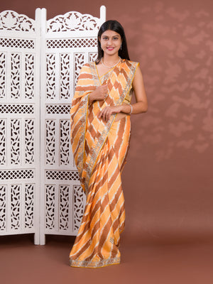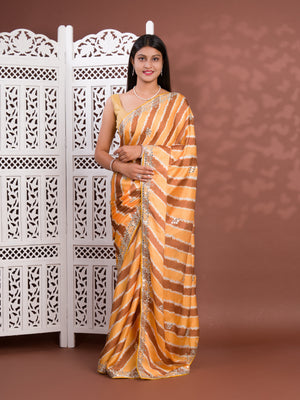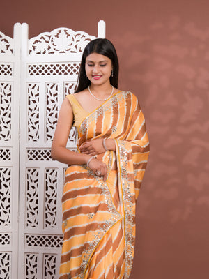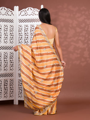 Tanmira New H O Silk Leheriya Saree with Shimmering Mirror embroidery Work GAN