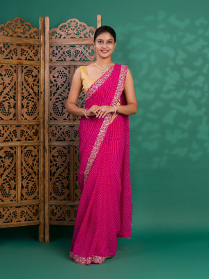Tanmira New Launch Chiffon Leheriya Style With Embroidery Border Work Saree STL