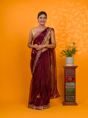 Tanmira New Launch Organza Leheriya Style With Gotapatti Work Saree MHS