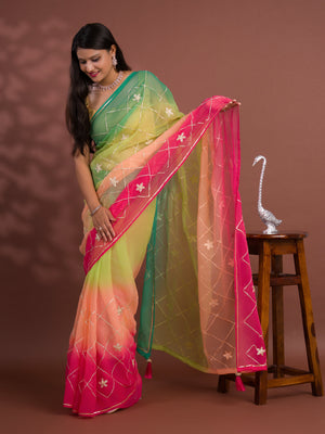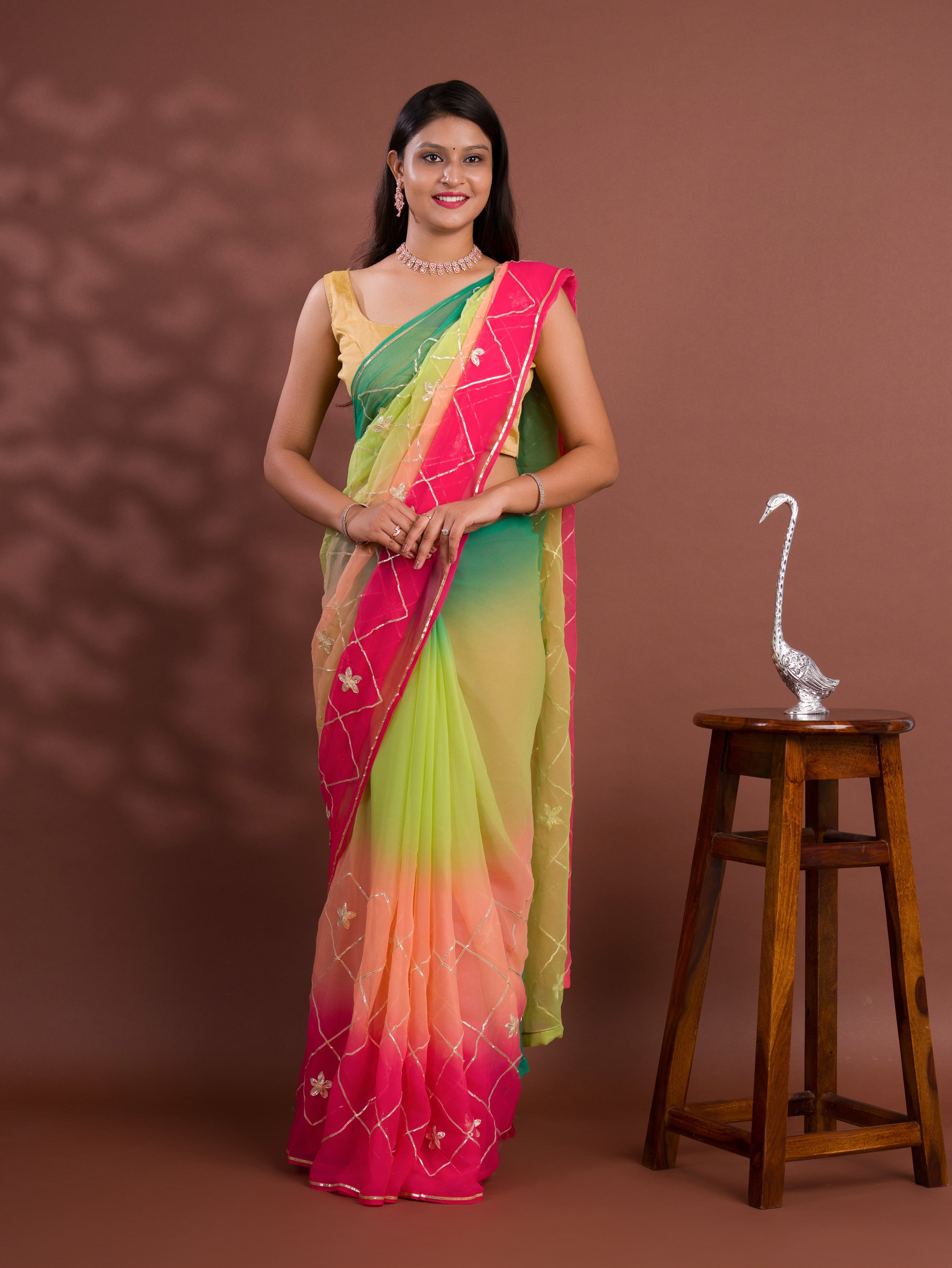 Tanmira New Launched Georgette Multi Colour Gota Patti Work Saree SWA