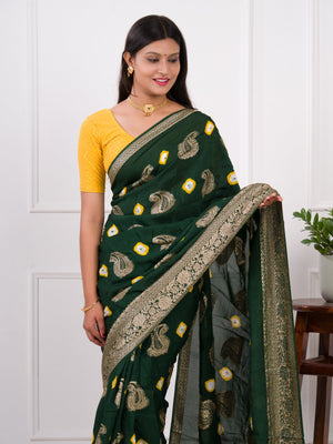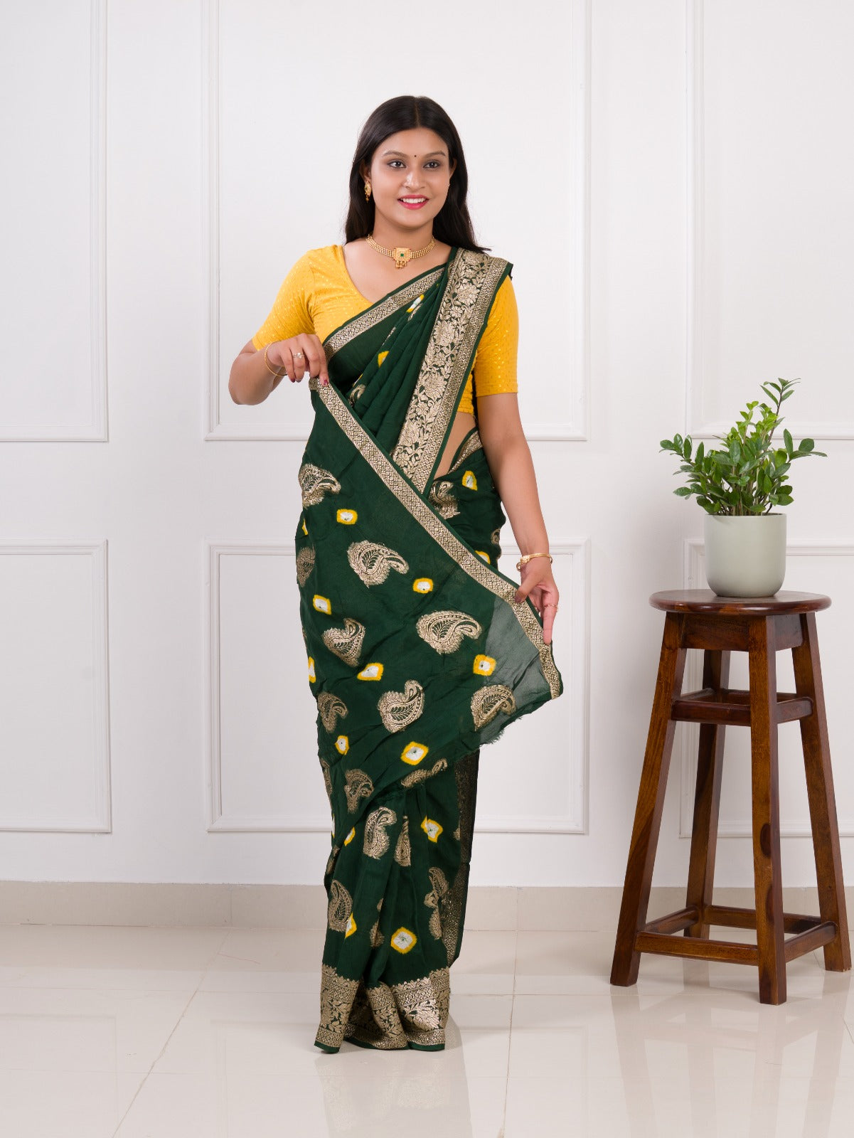 Tanmira New Lounched Dola Silk Bandhani Zari Weaving Work Saree RTK