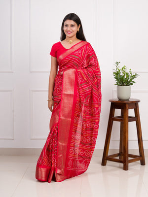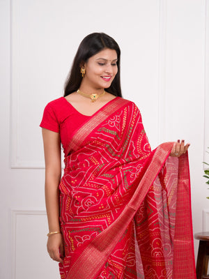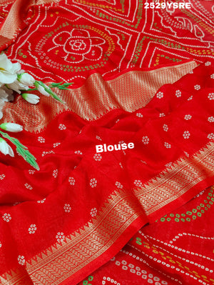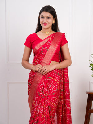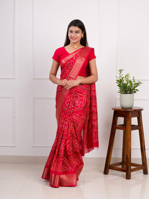 Tanmira New Cotton Silk Bandhani Style With Zari Border Work Saree STL