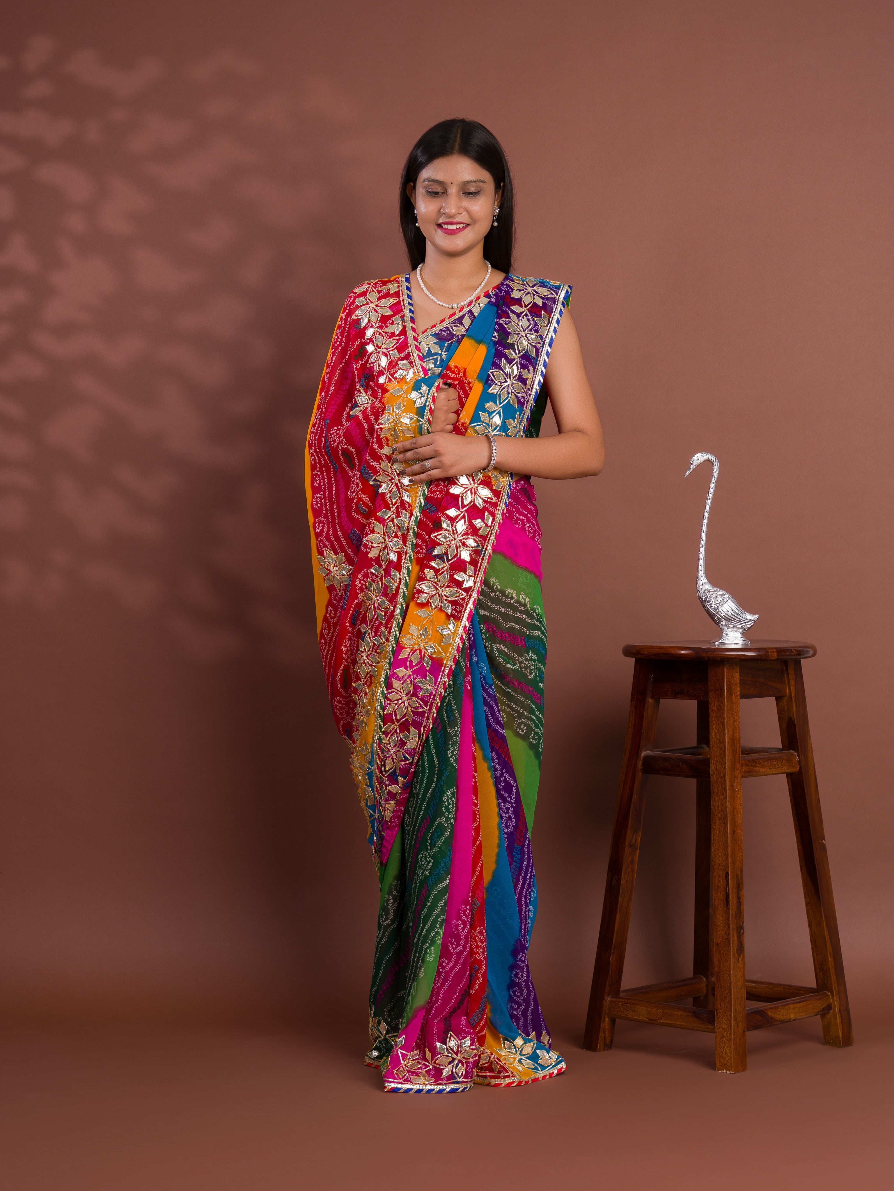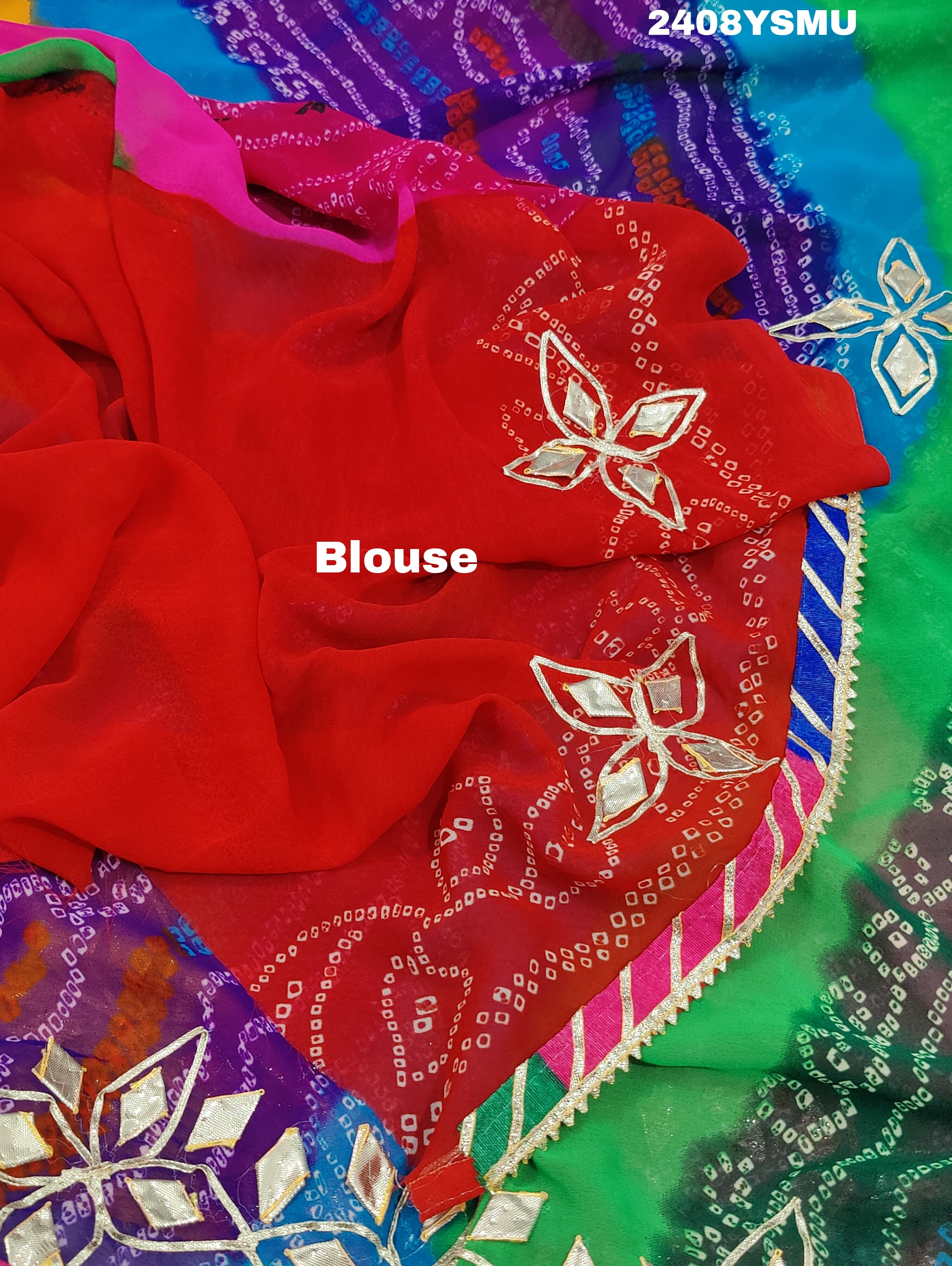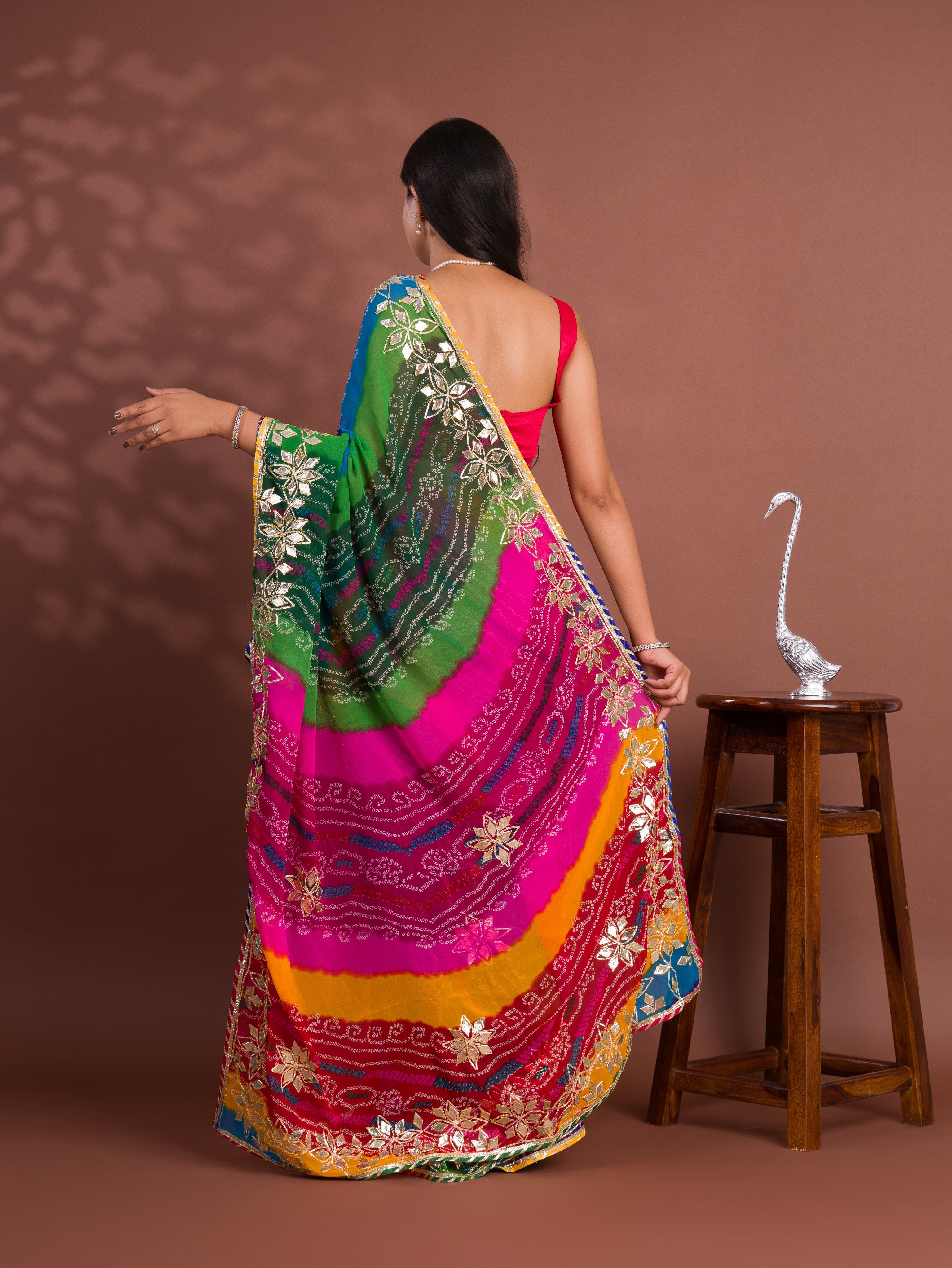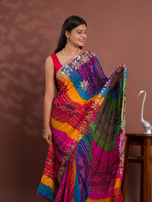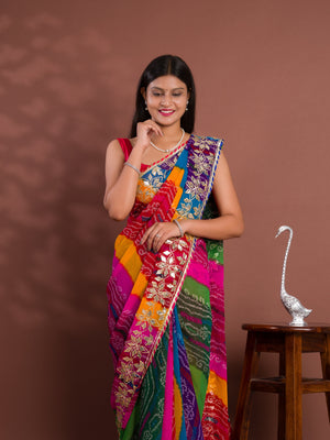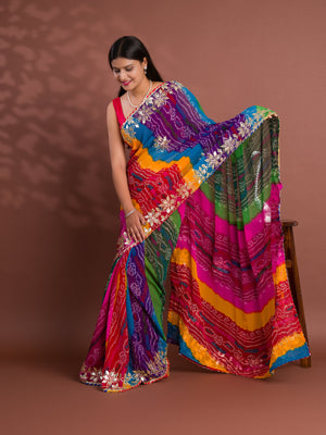 Tanmira New Mos chiffon Silk Bandhani Style With Gotapatti Work Saree MHS