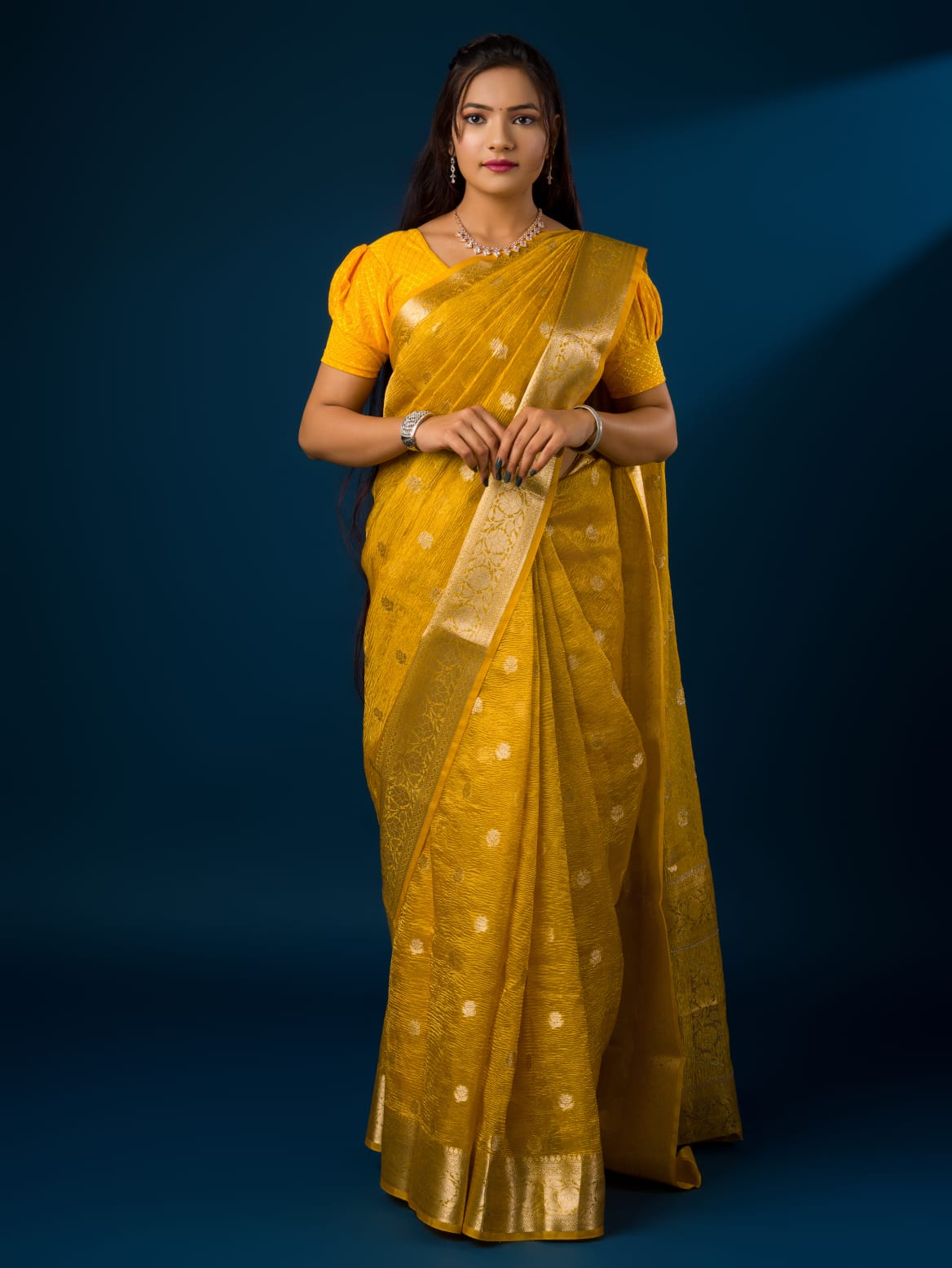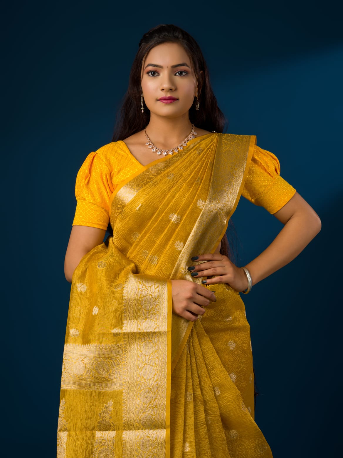 Tanmira New pure Banarasi Crush Tissue Handloom Zari Border Saree INA