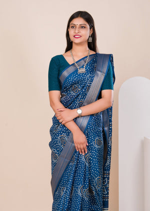 Tanmira New pure Cotton silk Ajrakh style With Ajrakh HandPrint Work Saree STL