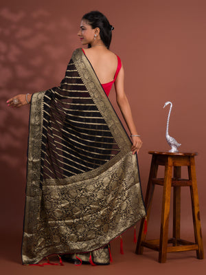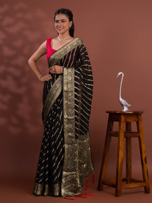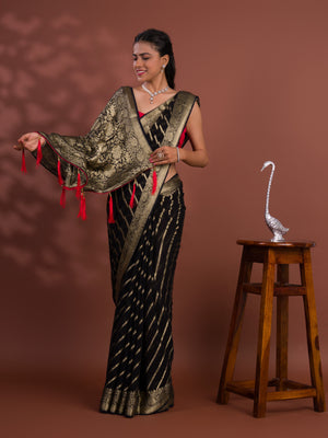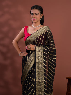 Tanmira New Pure khaddi Georgette Banarasi Handloom Leheriya Zari Weaving Saree MAHA