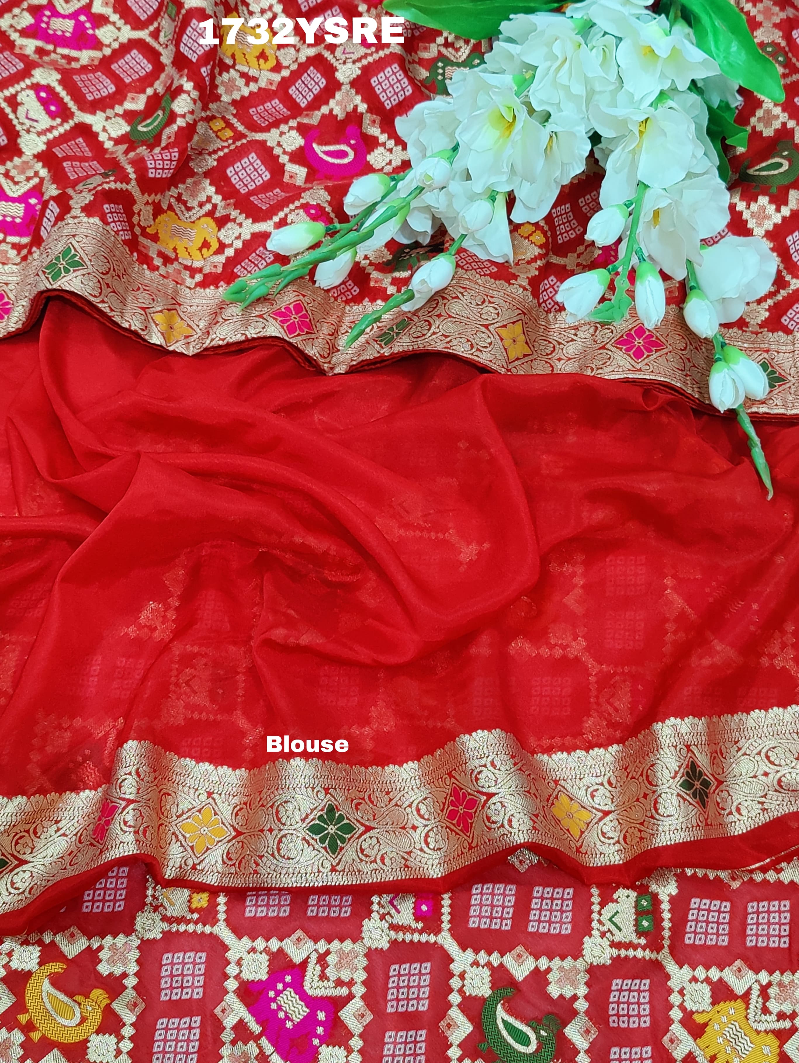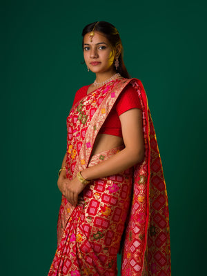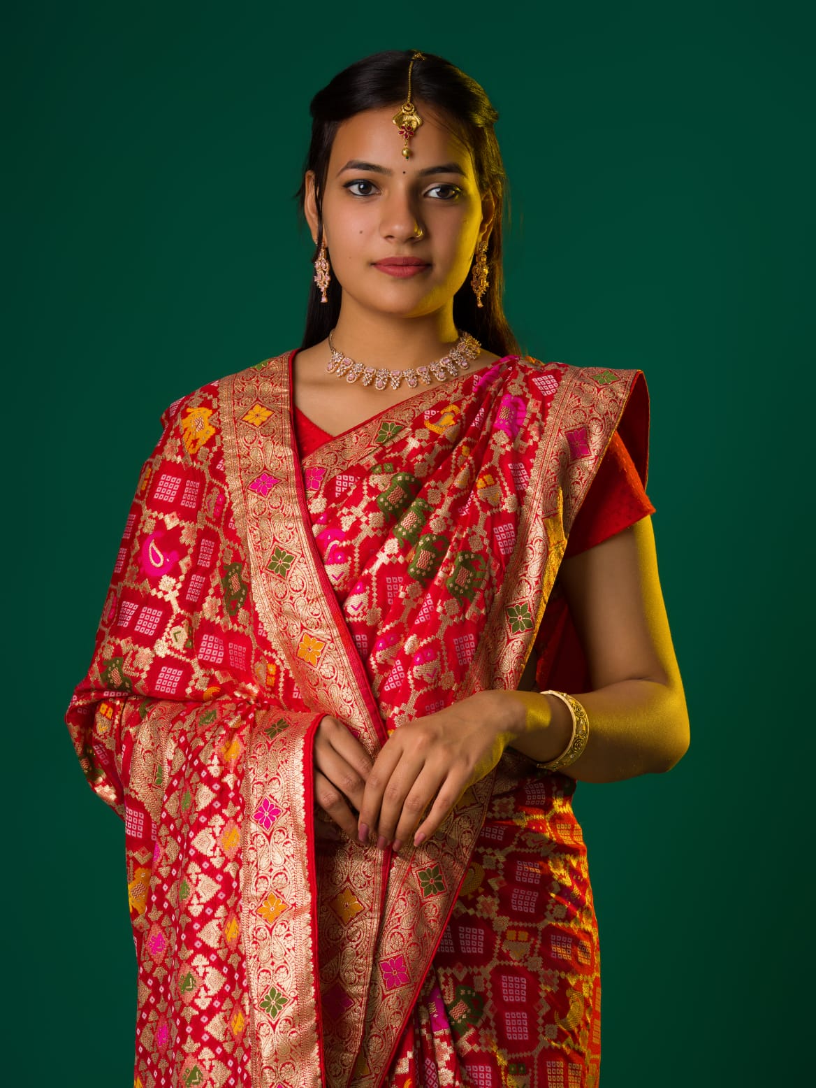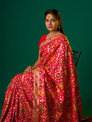 Tanmira New Pure Munga Silk Bandhani Zari Border Saree DC