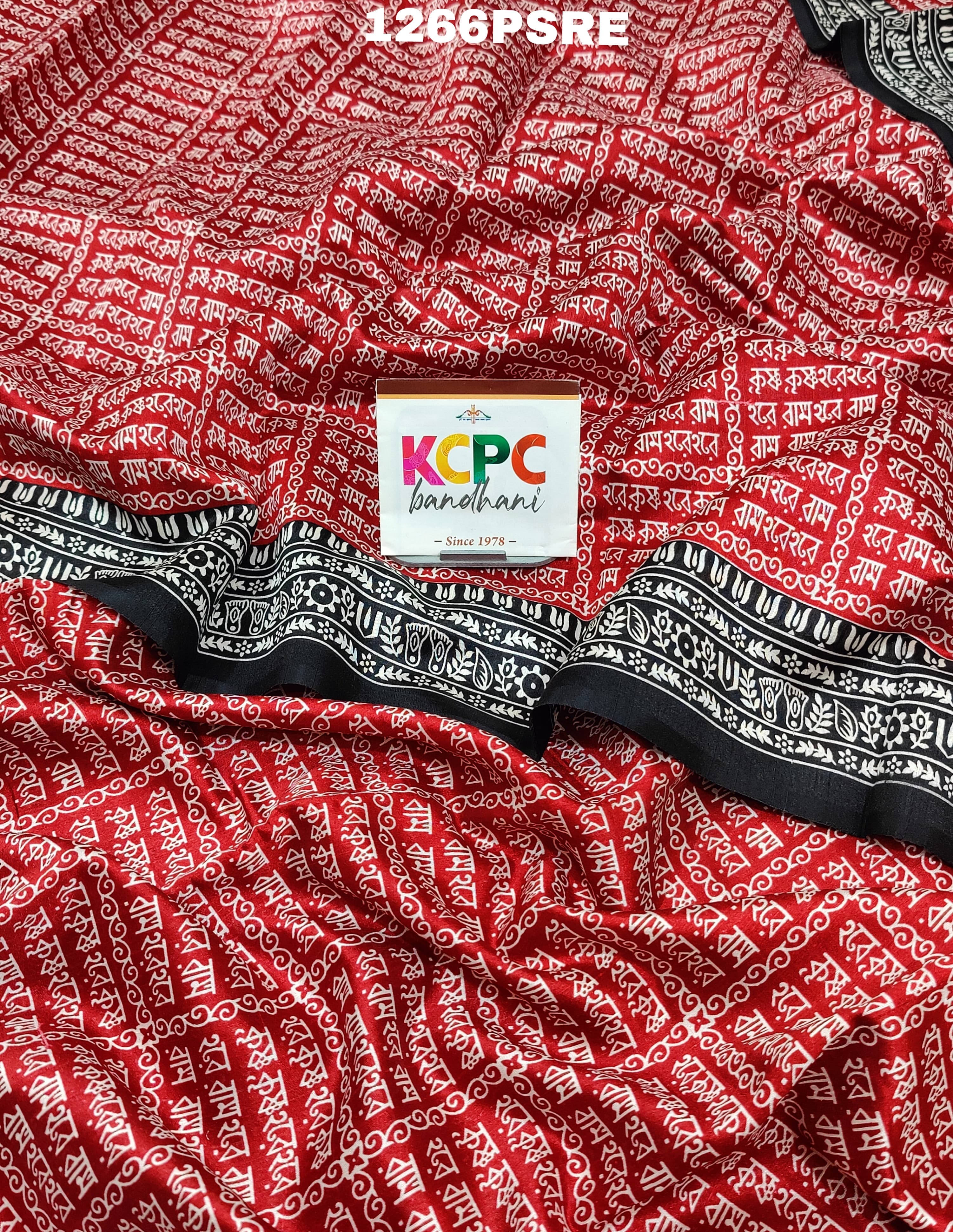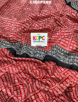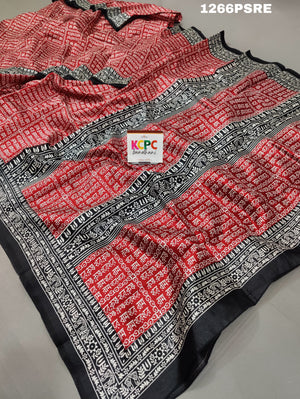 Tanmira New Red Printed Bhagalpuri Silk Saree APL