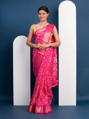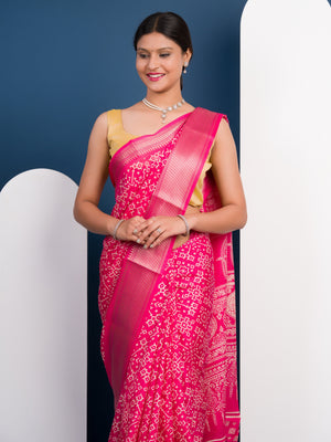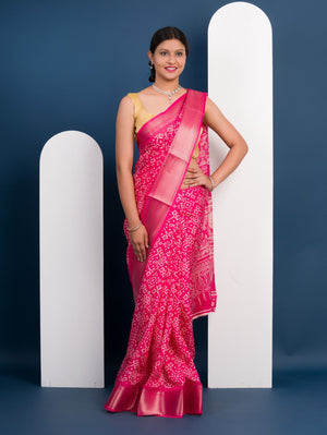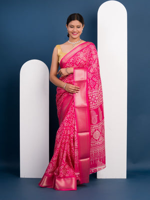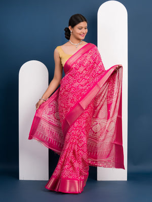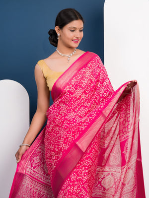 Tanmira New Special Cotton silk Ajrakh style With Ajrakh HandPrint Work Saree STL