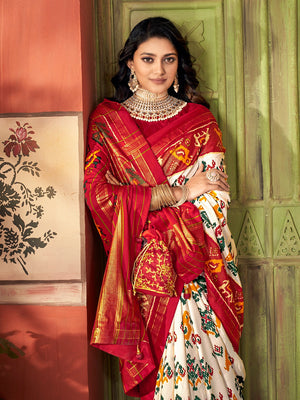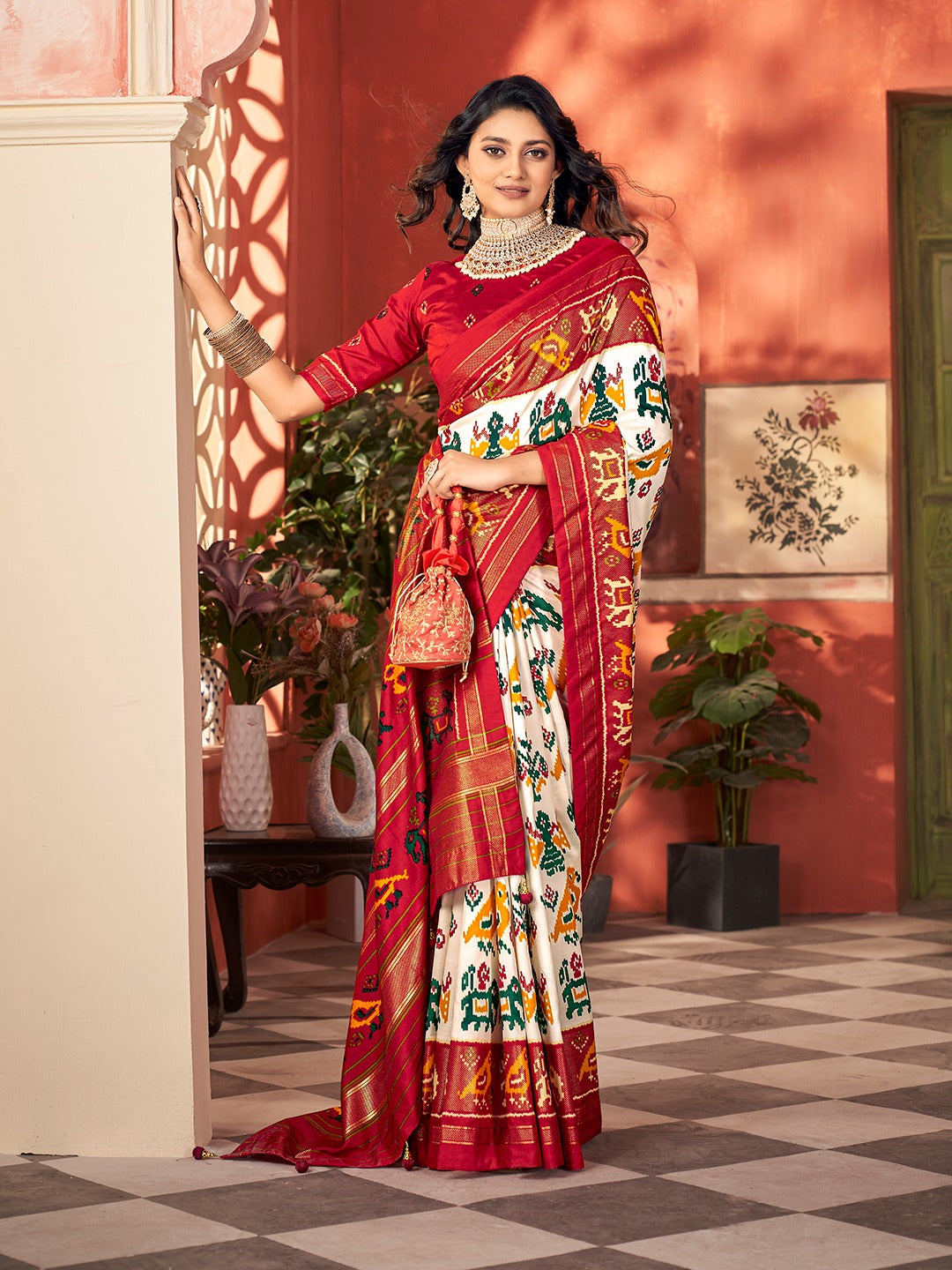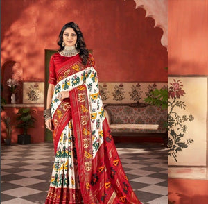 Tanmira New Special Malai silk Patola Style With Hand print Work saree