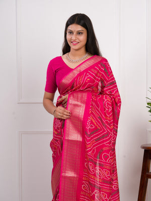 Tanmira New Spiceal Cotton Silk Bandhani Style With Zari Border Work Saree STL