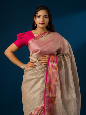 Tanmira New Tranding Crush Tissue Silk Banarasi Border Saree INA