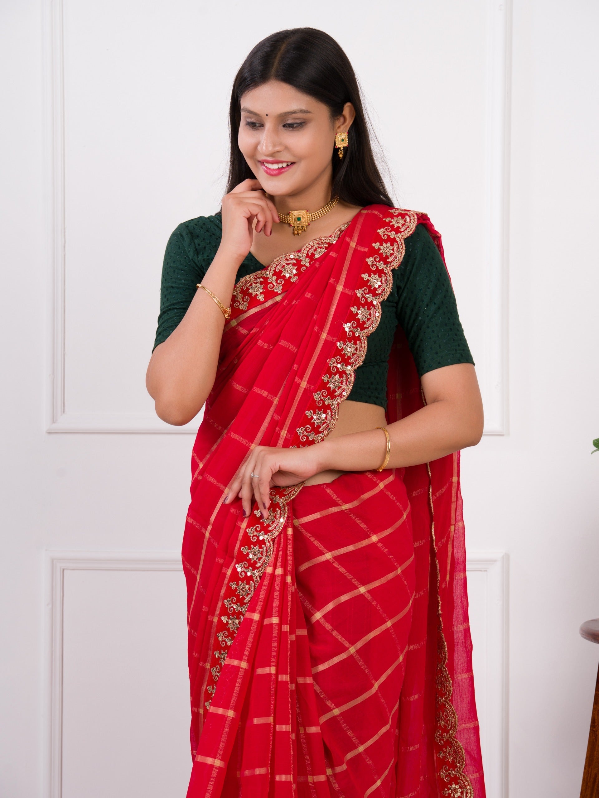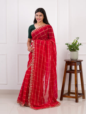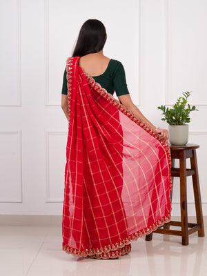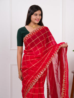 Tanmira Originals Karwachauth Special Pure Georgette Red Wedding Saree