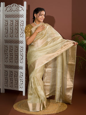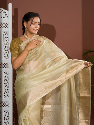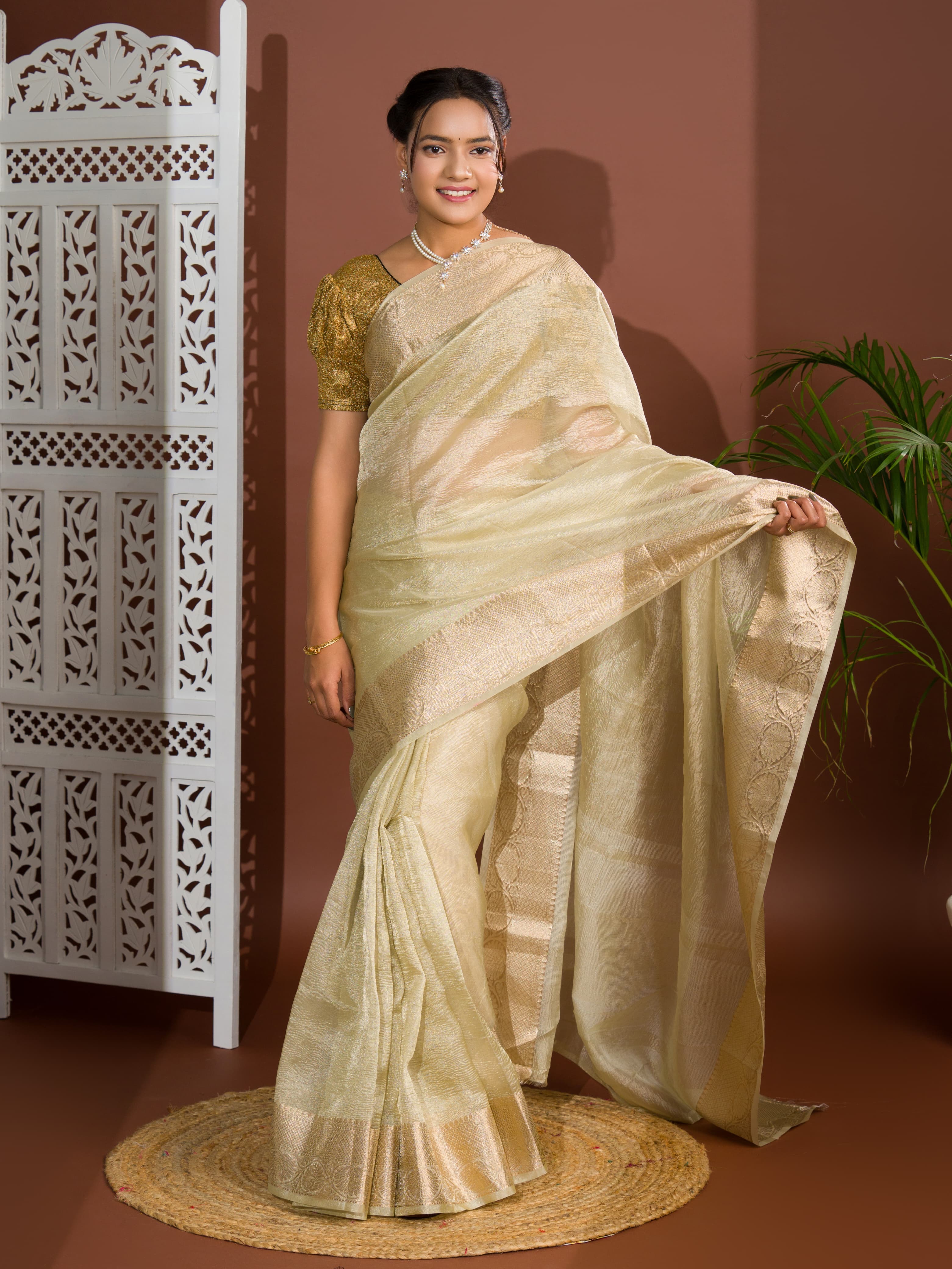 Tanmira pure Tissue Silk Banarasi Handloom Zari Border saree INA