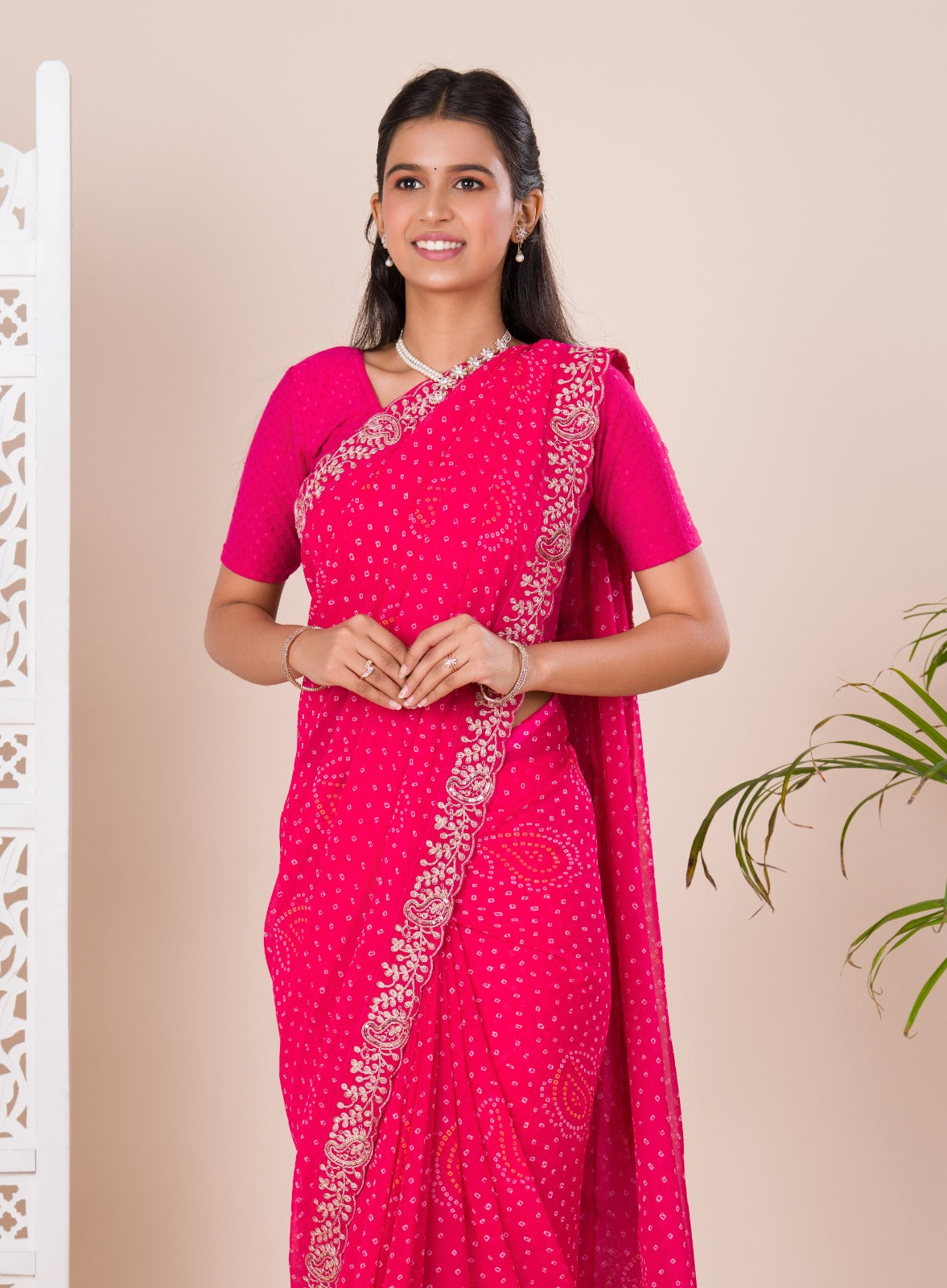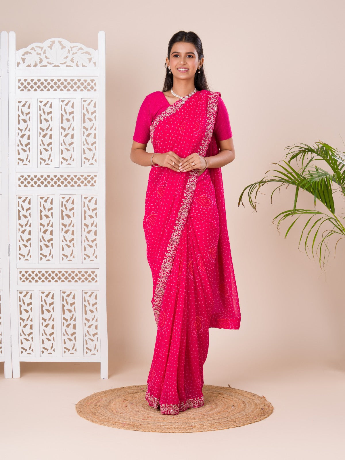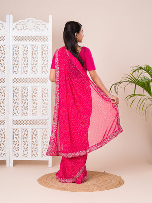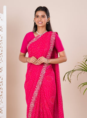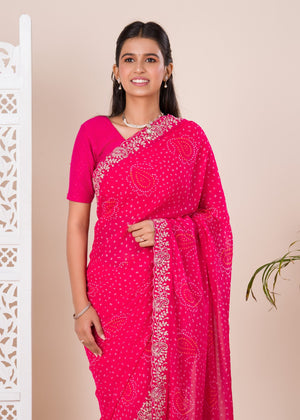 Tanmira Special Mos chiffon Hand Pitta aari Work Bandhani Saree STL