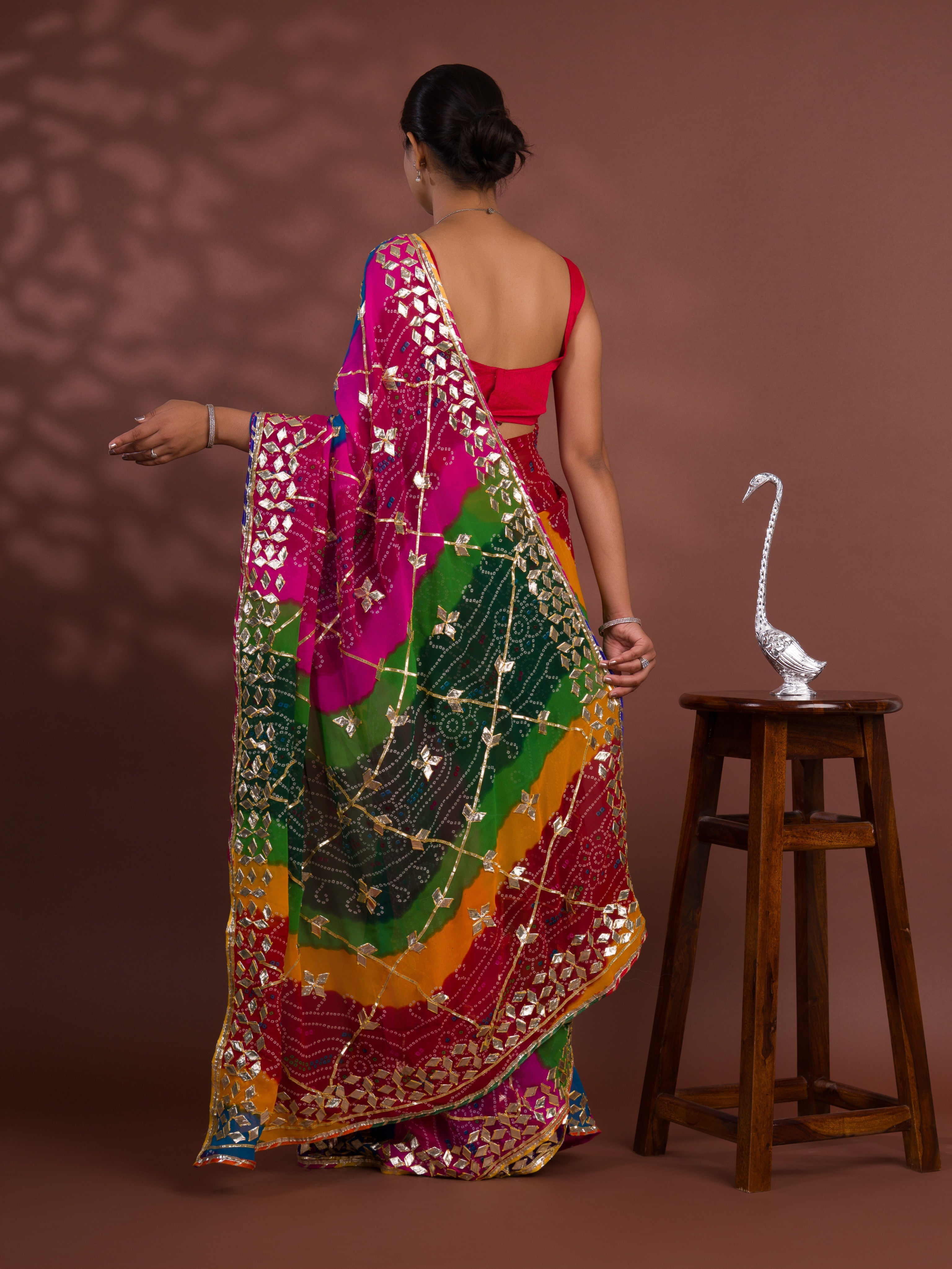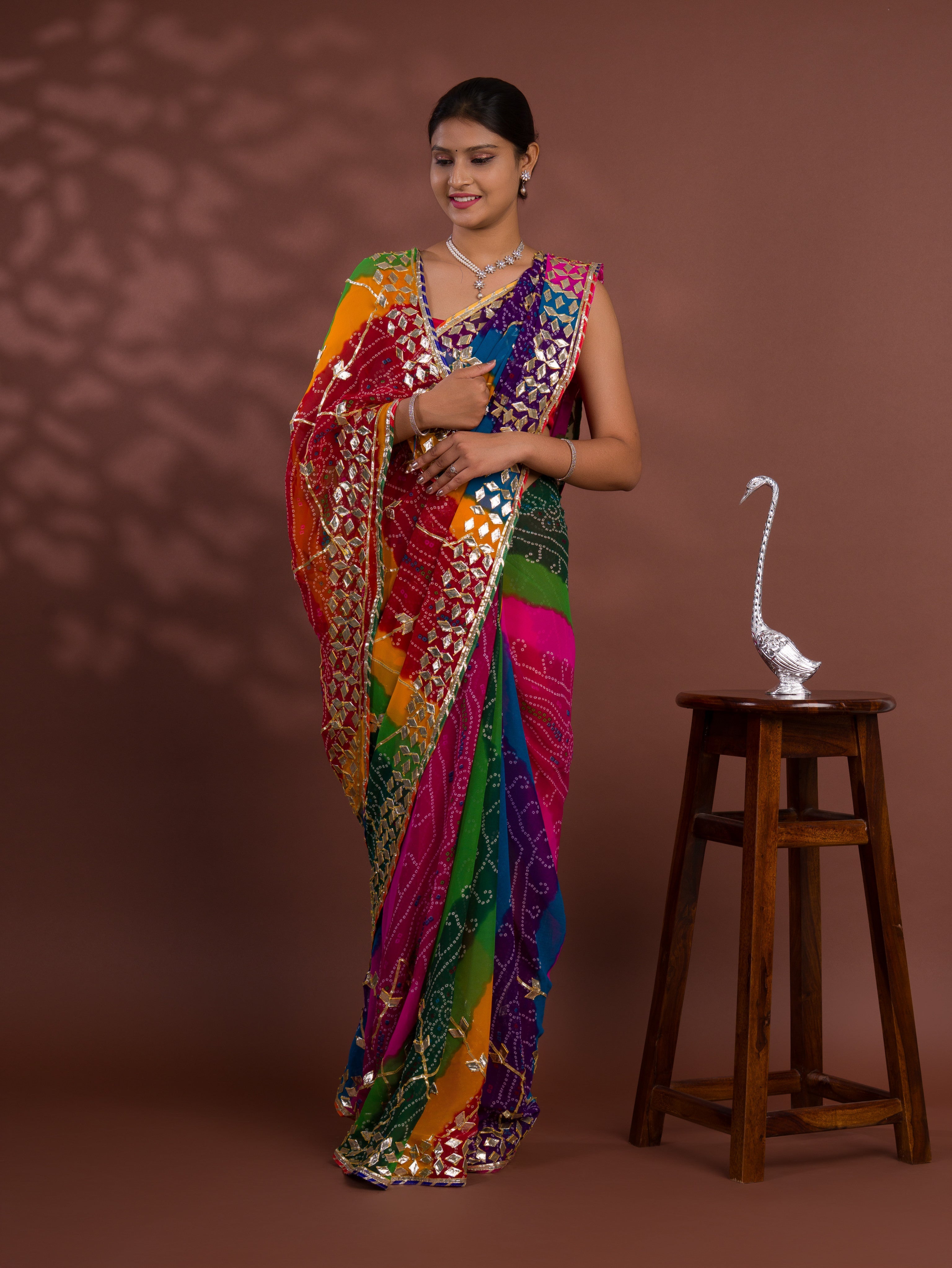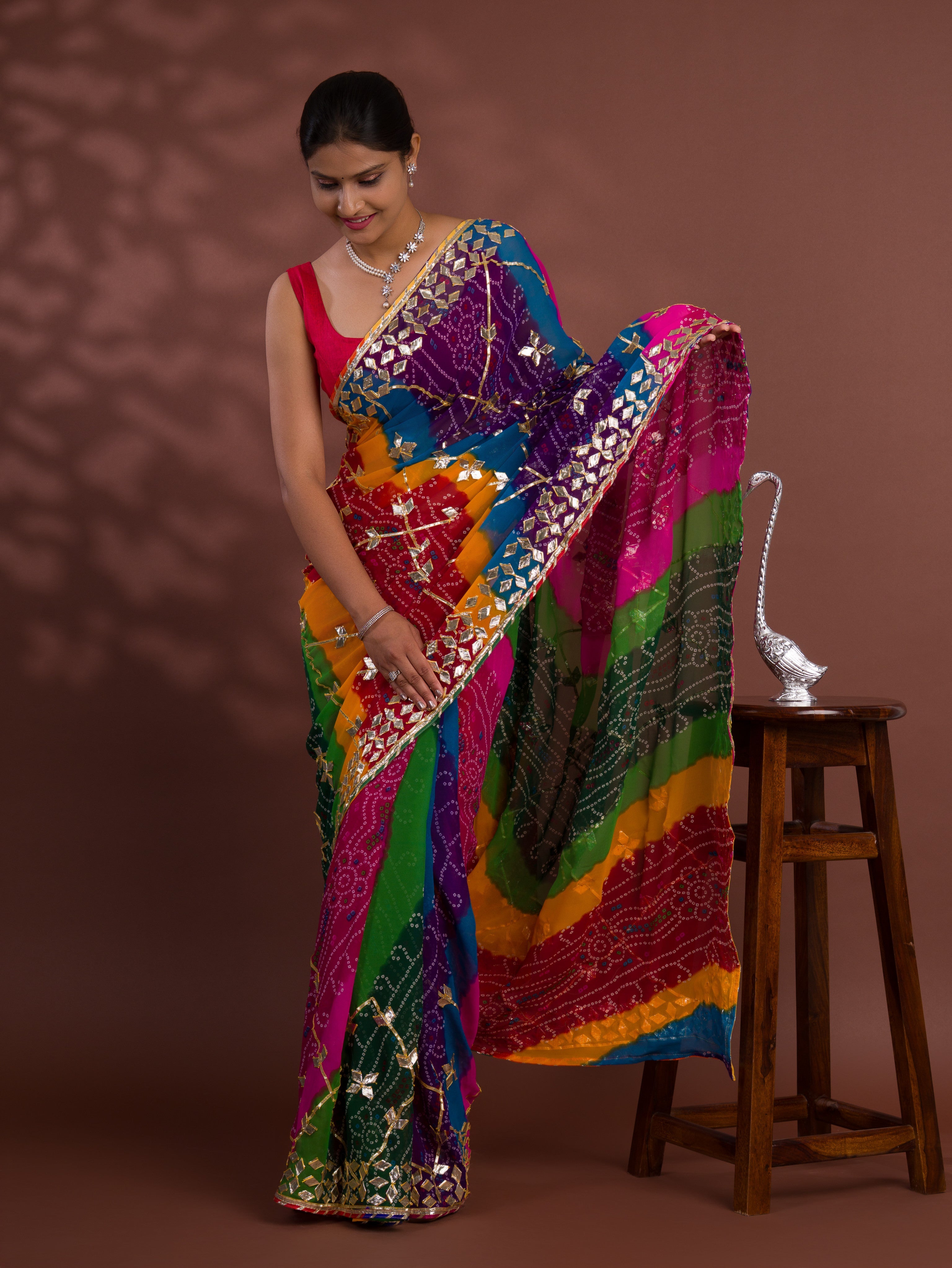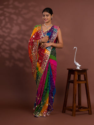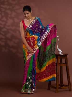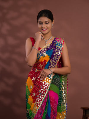 Tanmira Special Pure Georgette Pachranga Bandhej Gotapatti Work Saree MHS