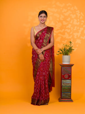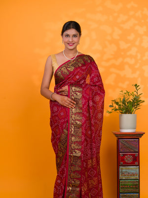 Tanmira Special Royal Rajasthani Bandhani Viscose Saree with Elephant Motifs RJB