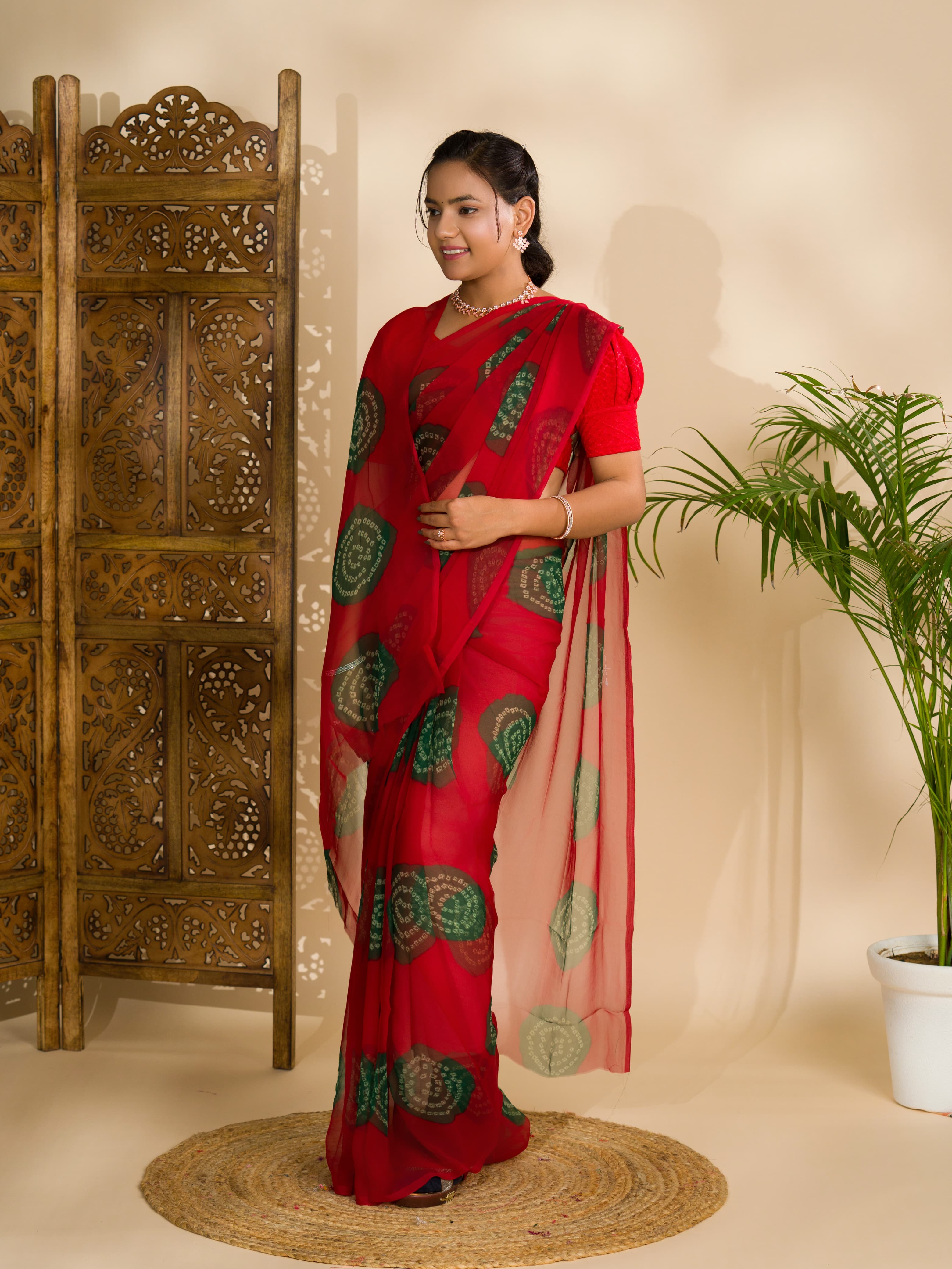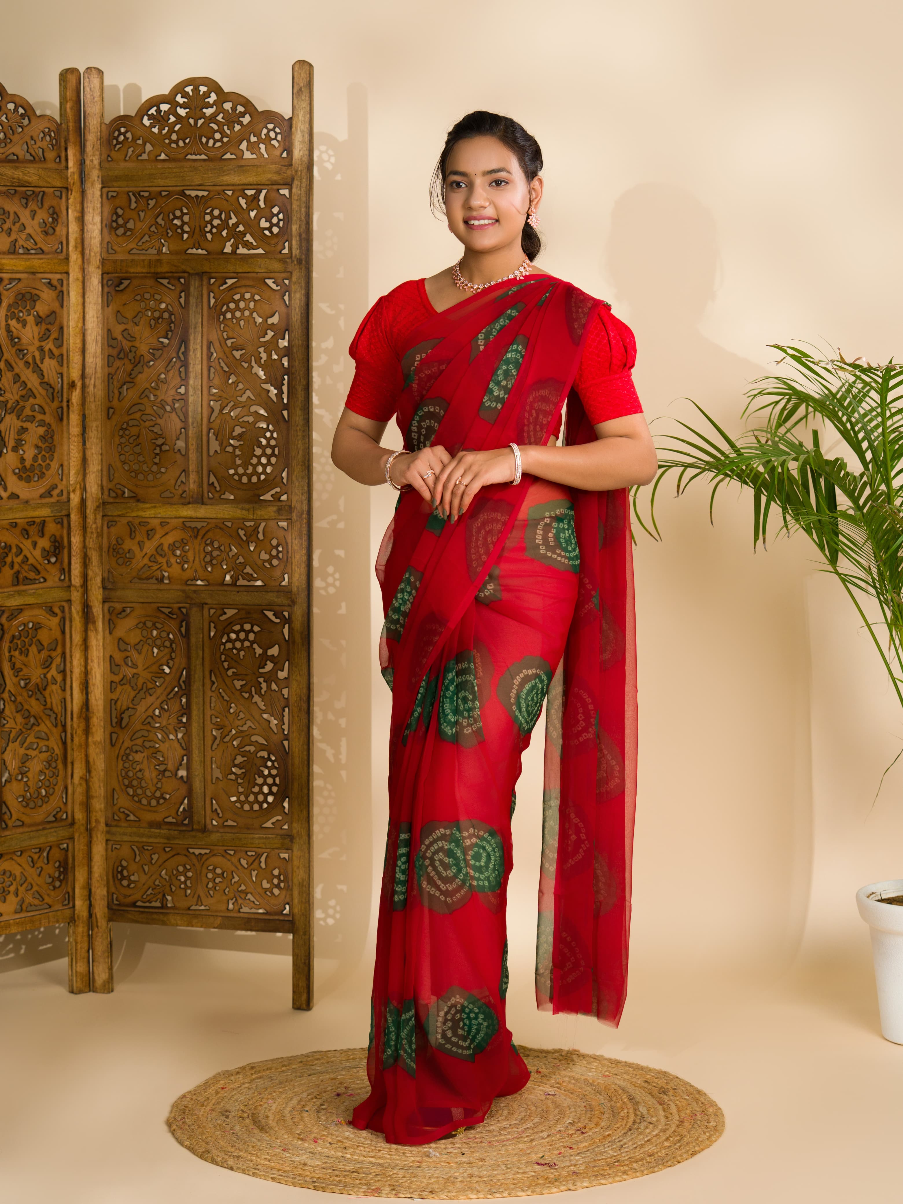 Tanmira Summer Special Rajasthani Royal Georgette Bandhani Sarees Red