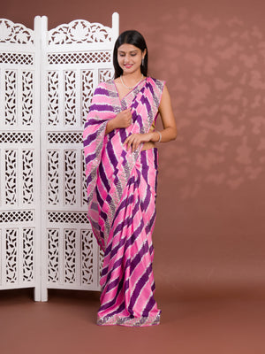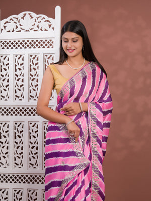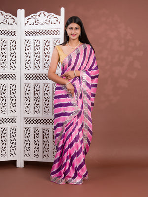 Tanmira Traditional H O Silk Leheriya Saree with Shimmering Mirror embroidery Work GAN