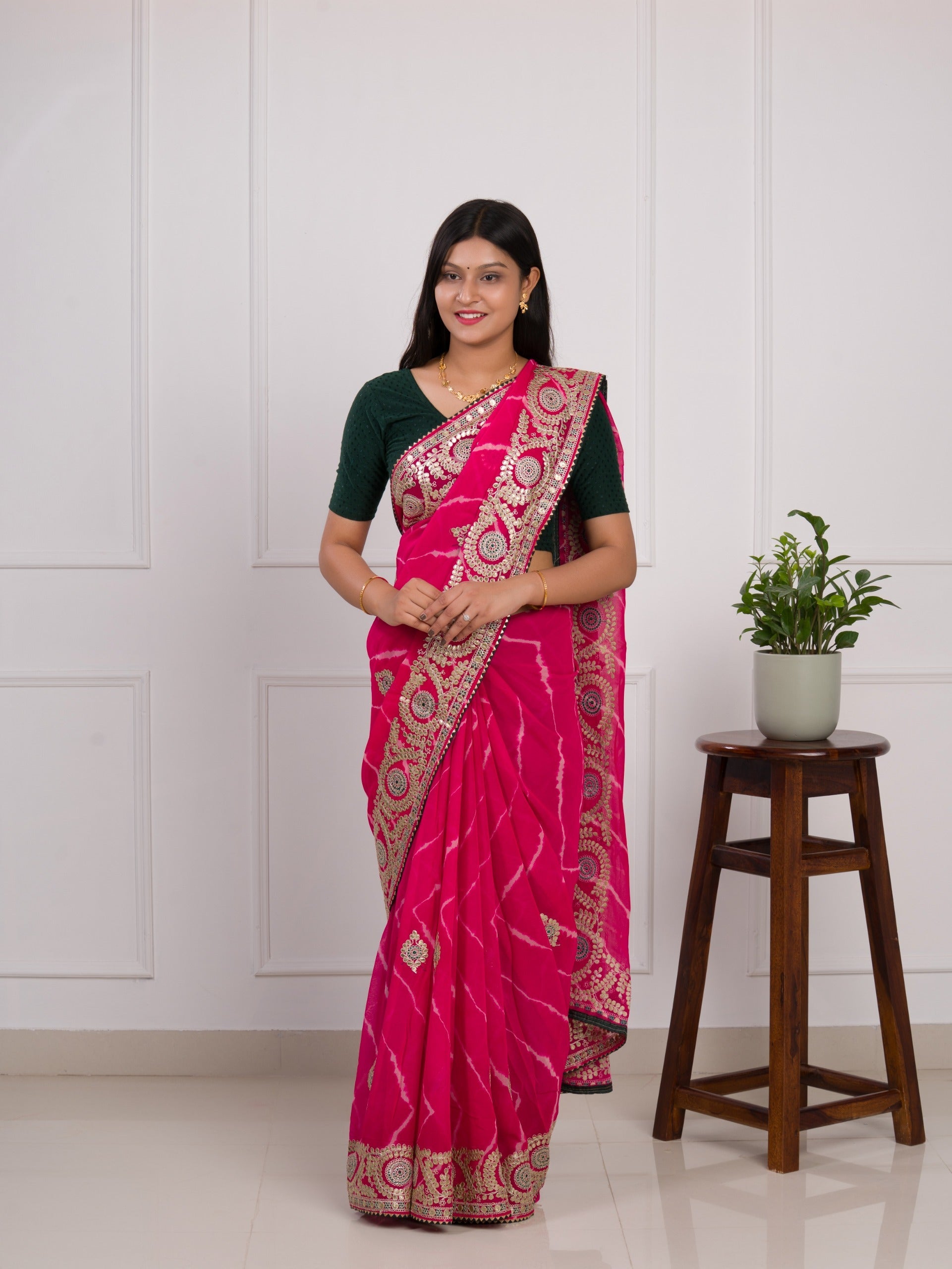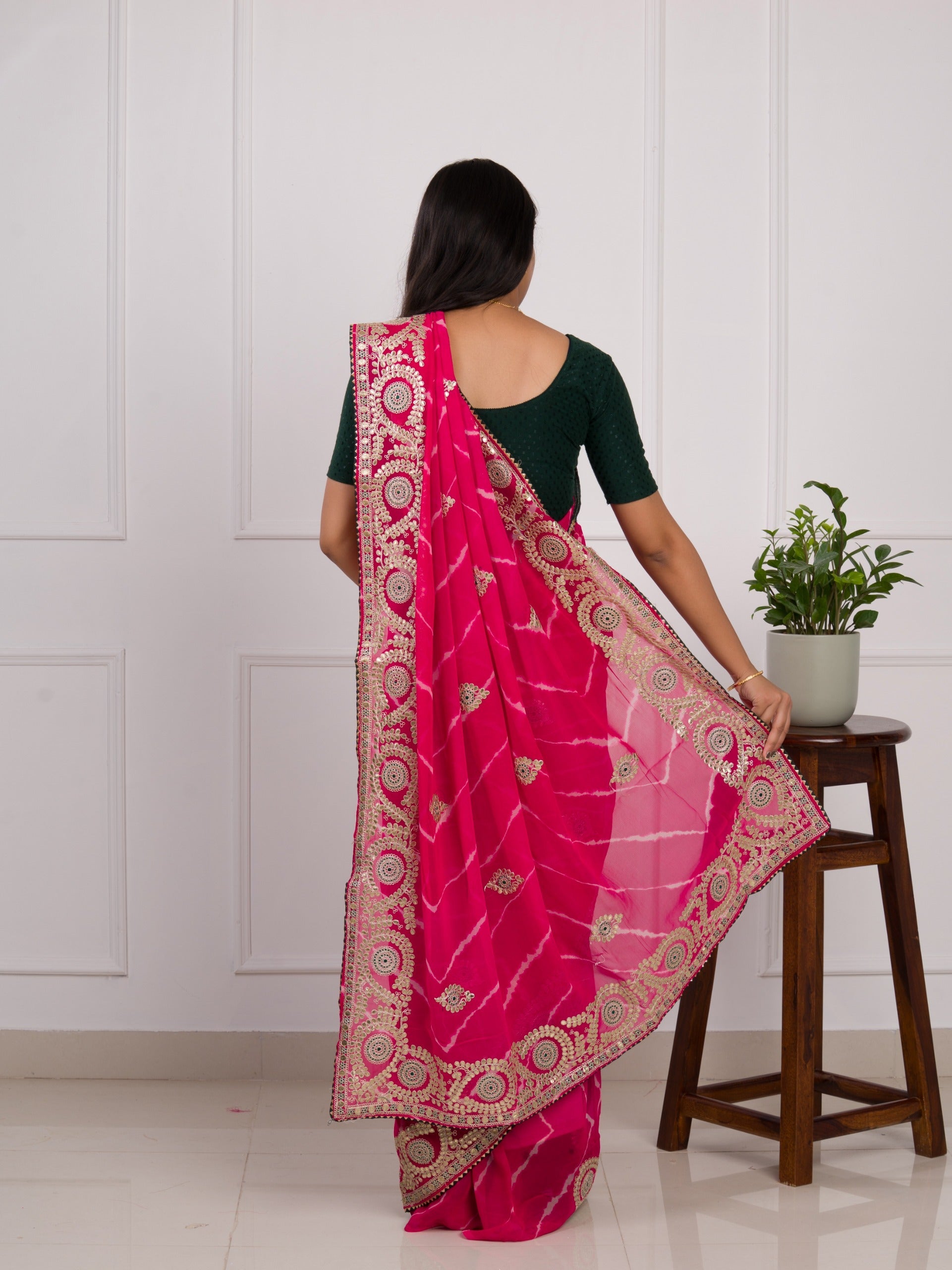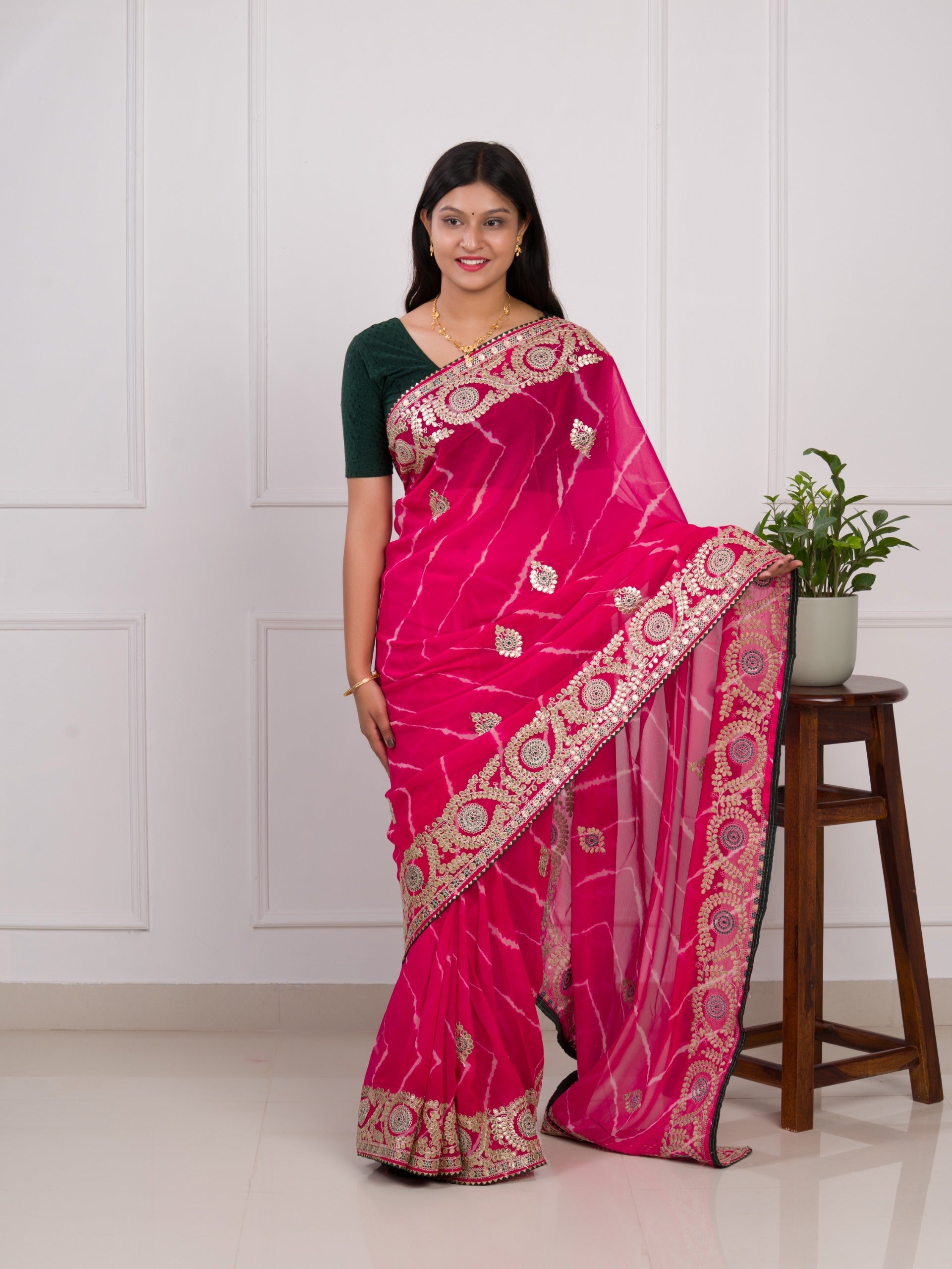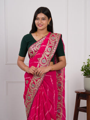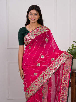 Tanmira Pure Georgette Jaipuri Mothda Leheriya Saree with Gotapatti SWA