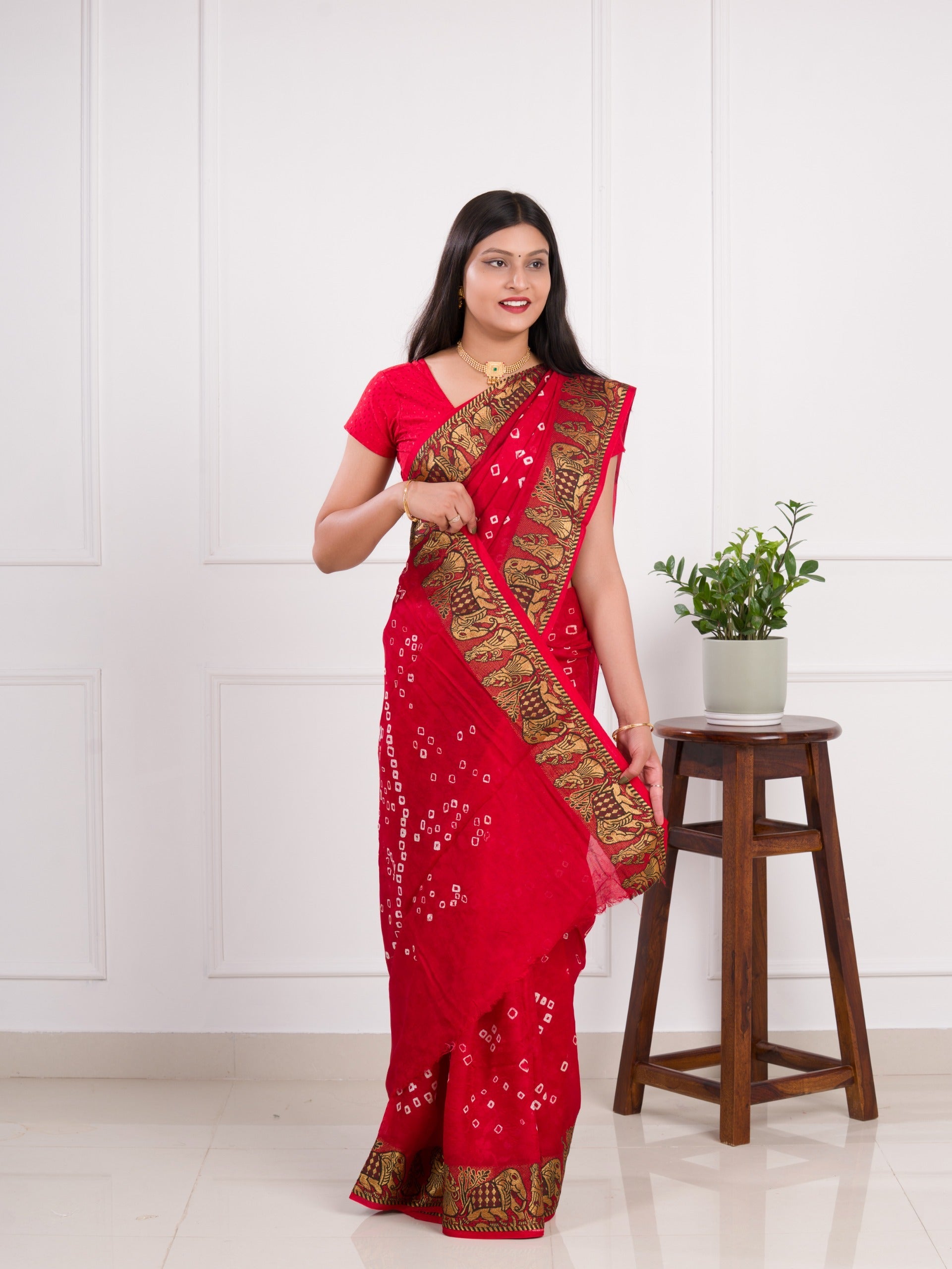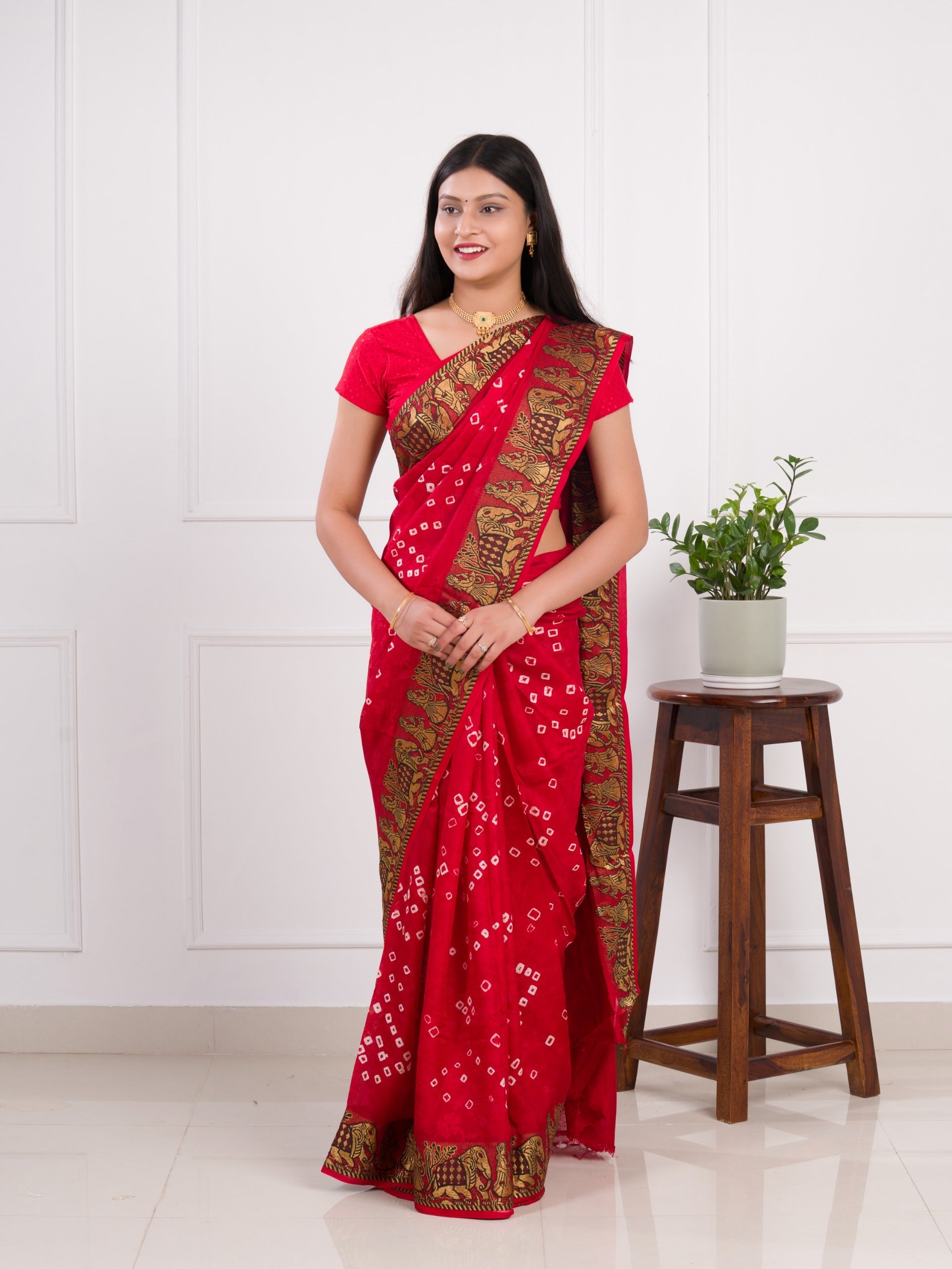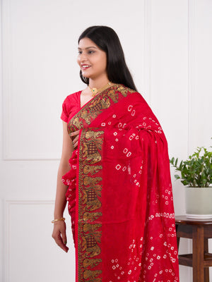 Tanmira Handmade Bandhej Bandhani Viscos Silk Saree